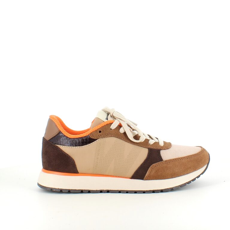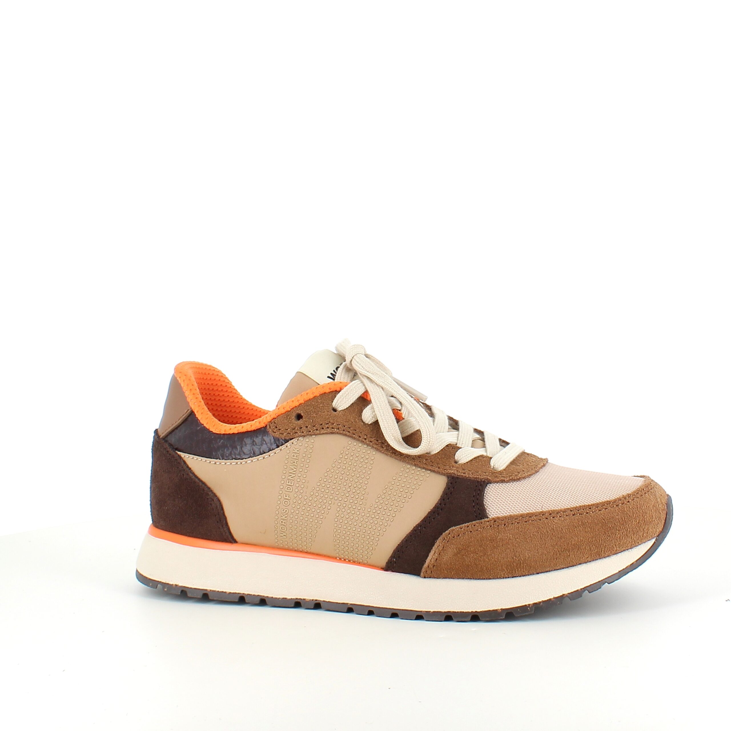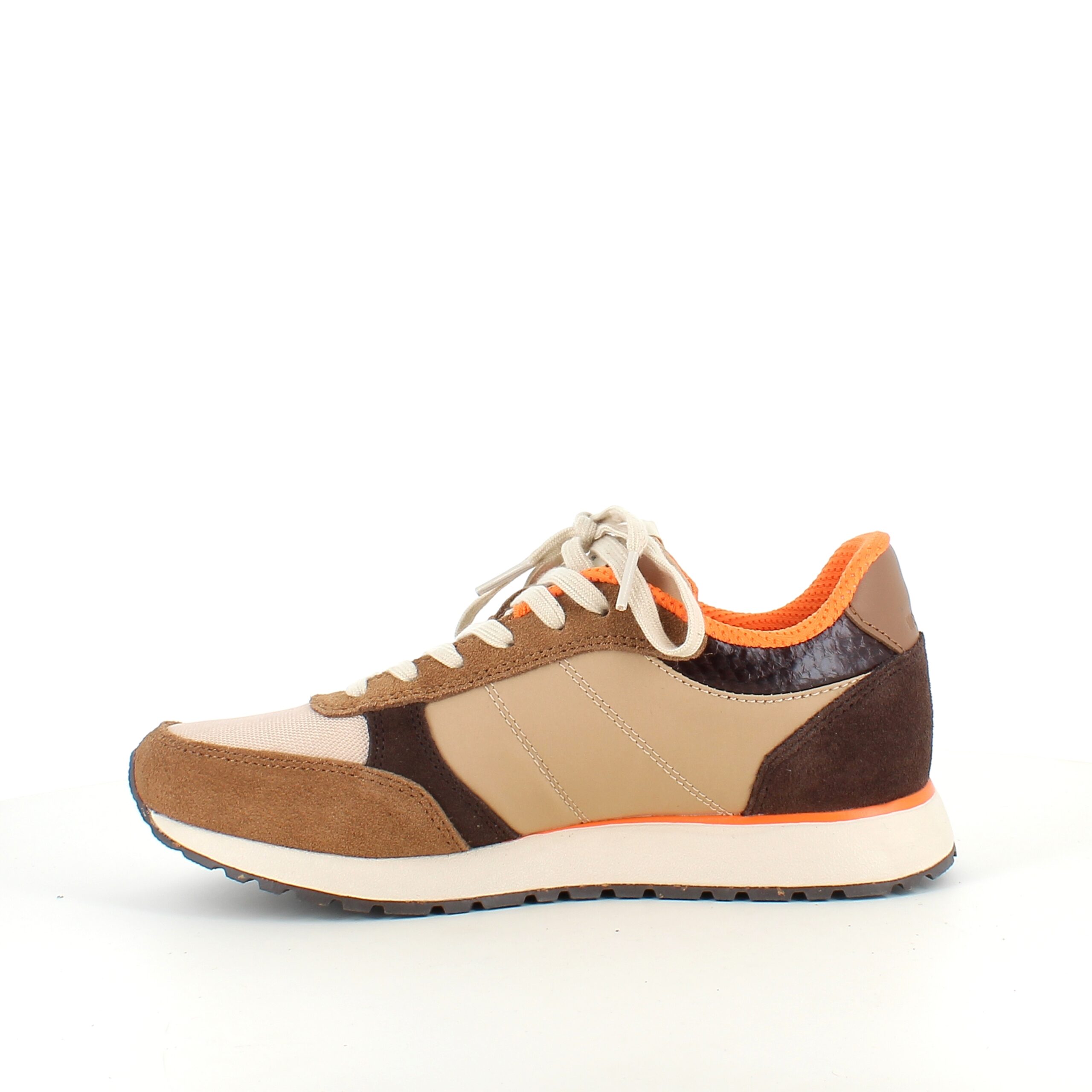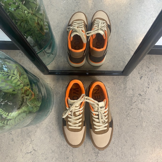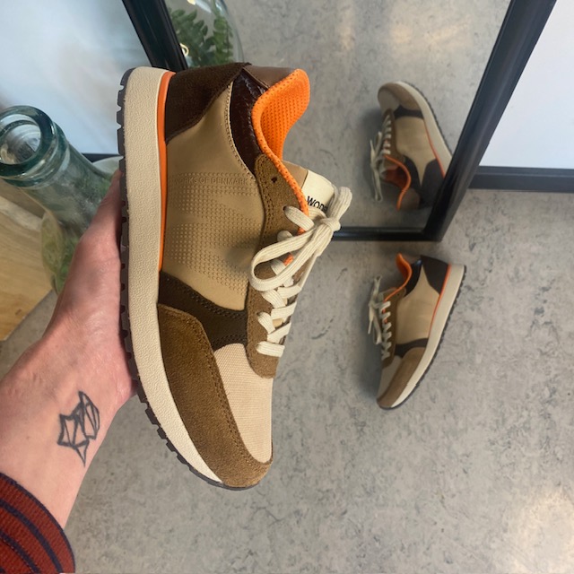 Sko fra Woden i en farvekombination af orange/beige/brun.