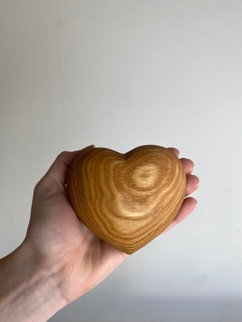 Dette smukke hjerte i træ er et enkelt, men stærkt symbol på omsorg, kærlighed og nærvær.