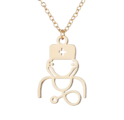 Halskæde i guldtone med sundhedspersonale i vedhænget.