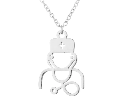 Halskæde i sølvtone med sundhedspersonale i vedhænget.