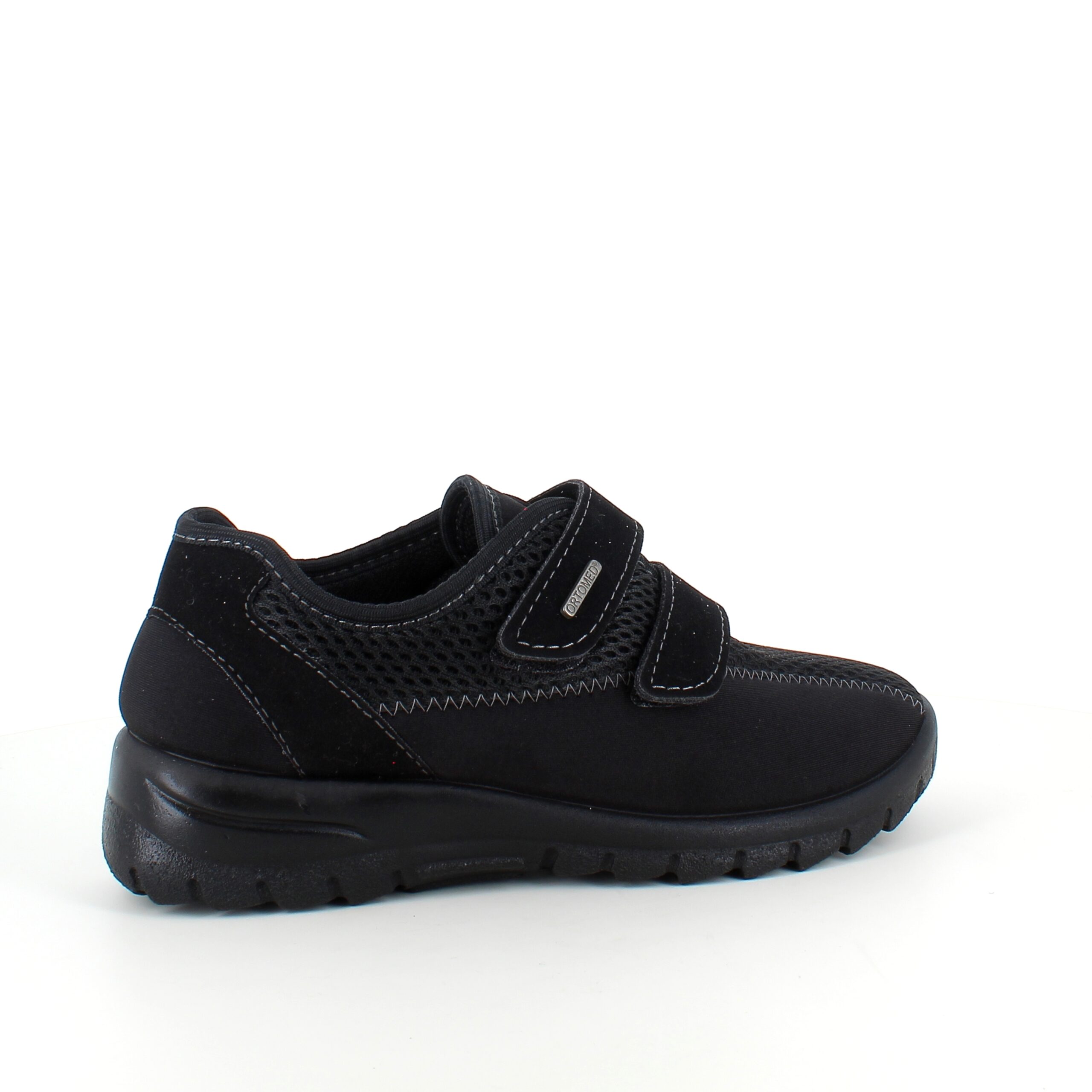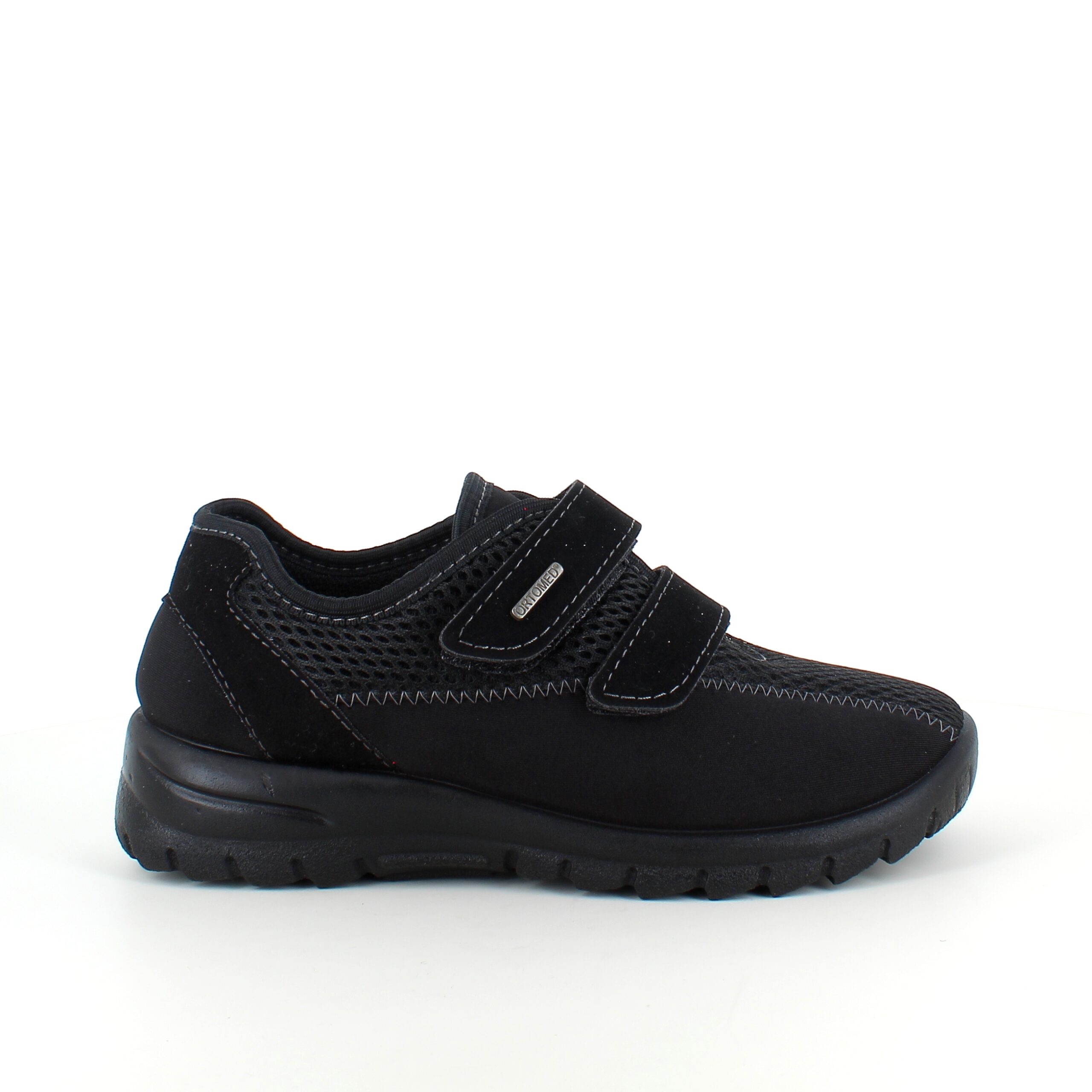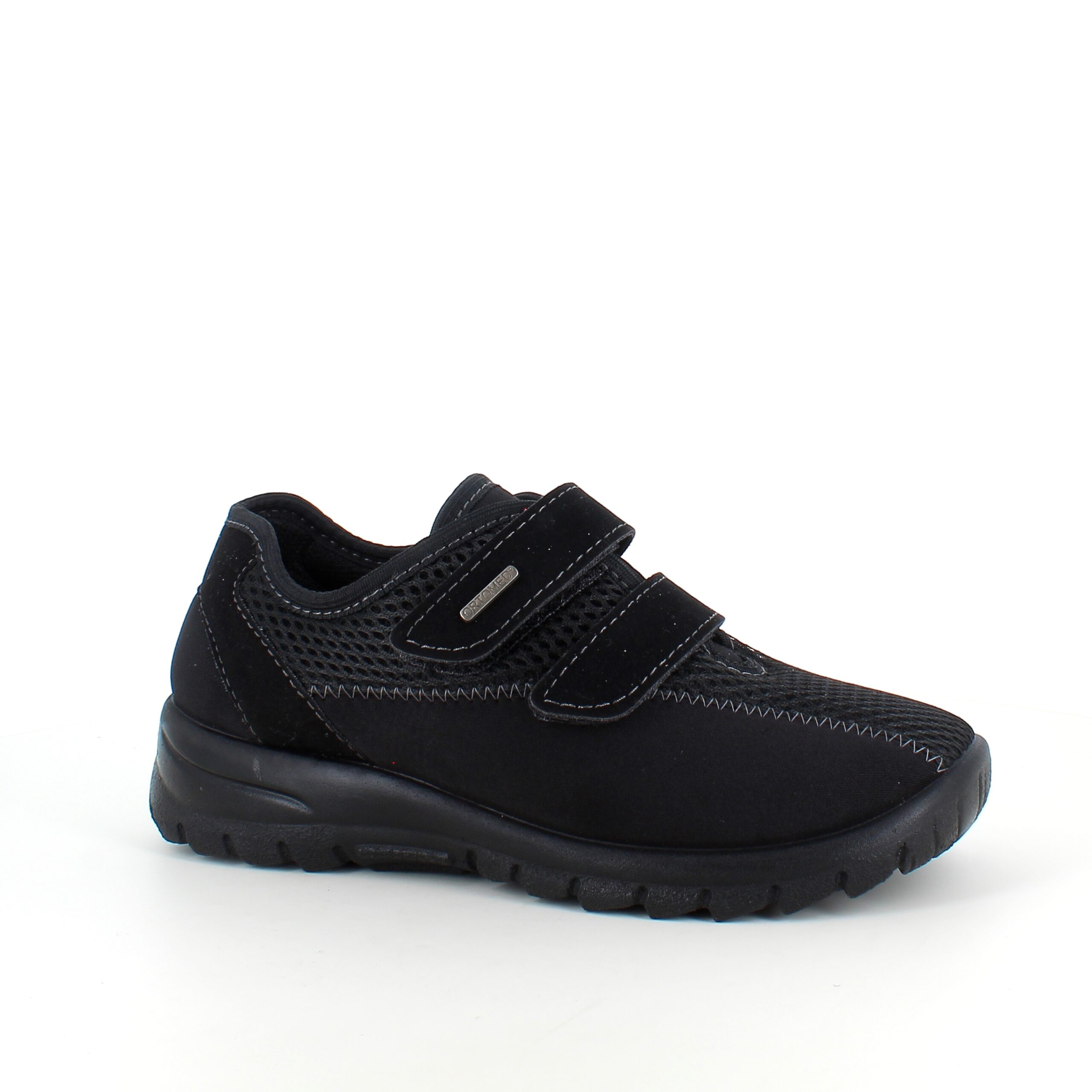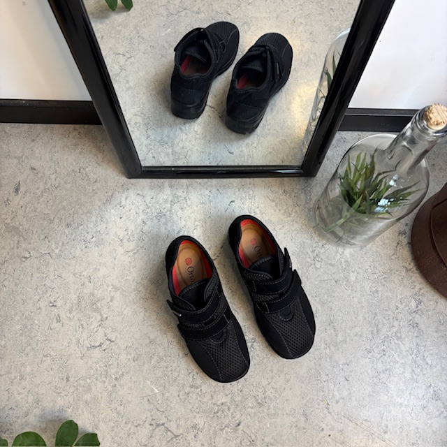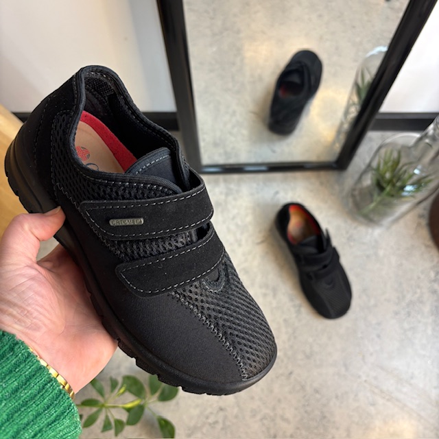 Sort ortopædisk sko med ekstra bred pasform, velcro & udtagelig memory-skum sål