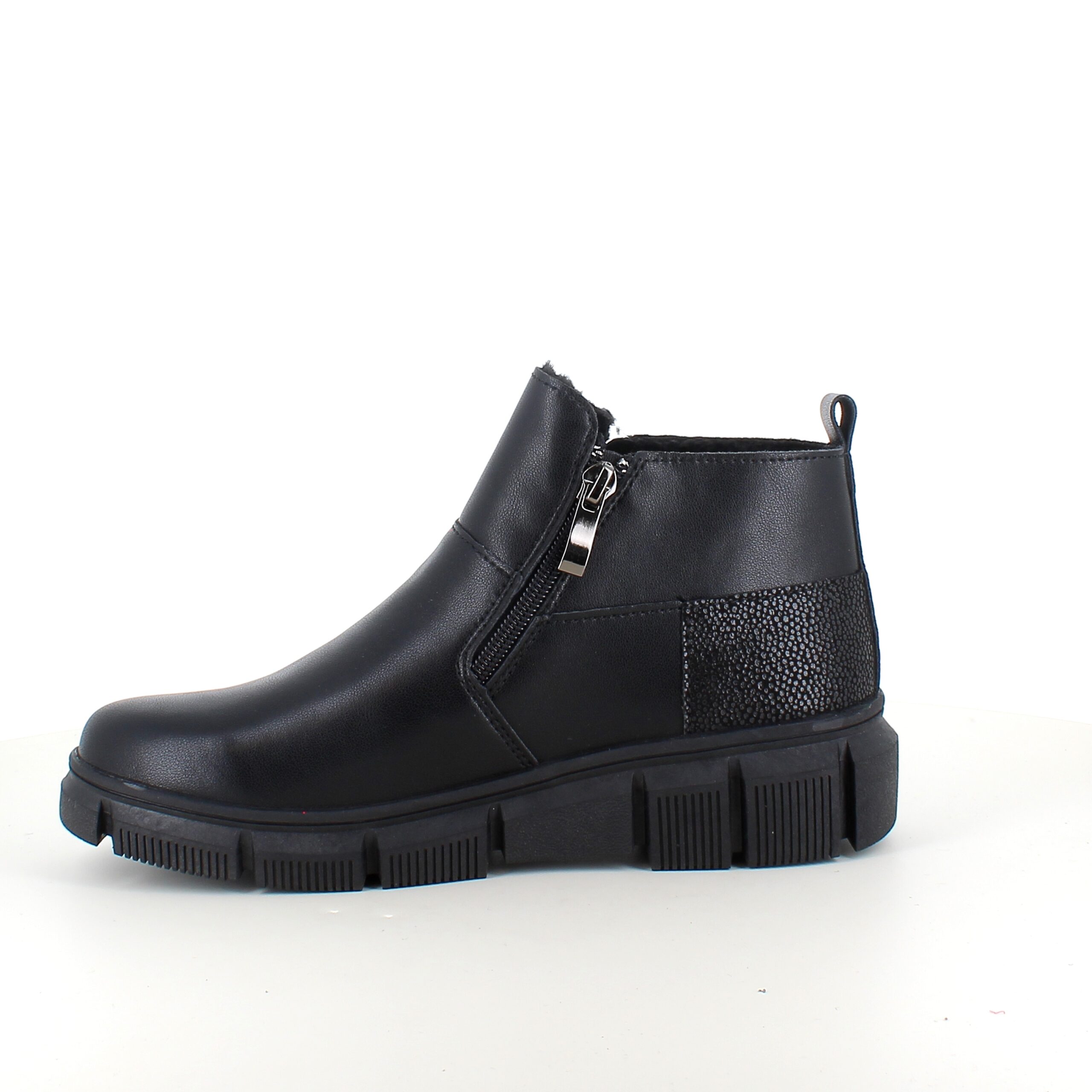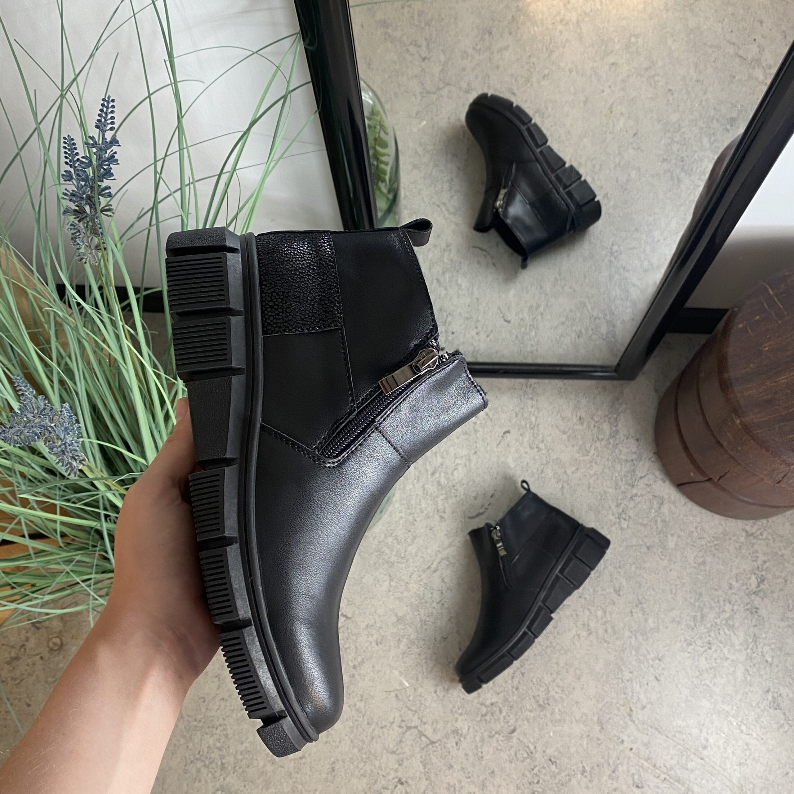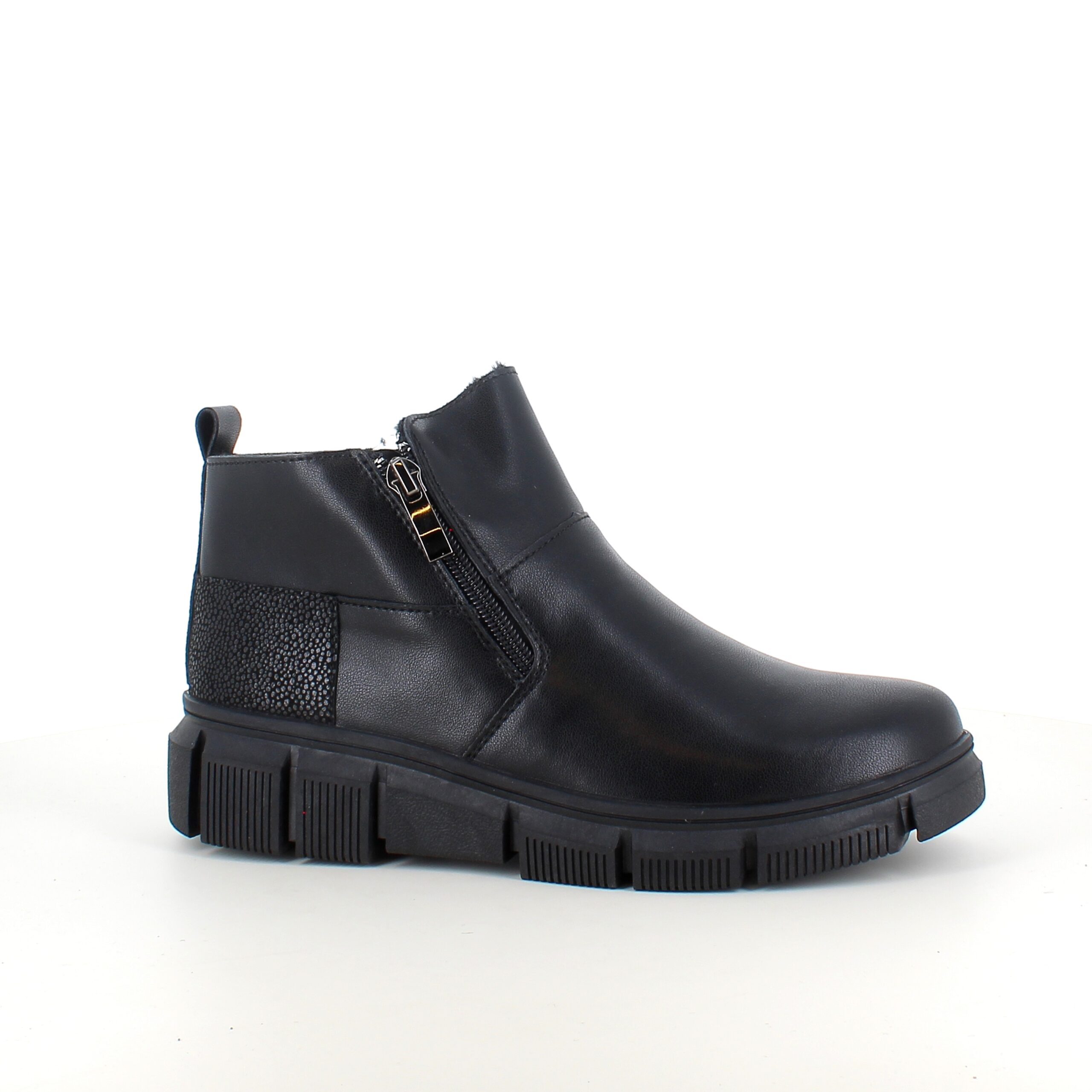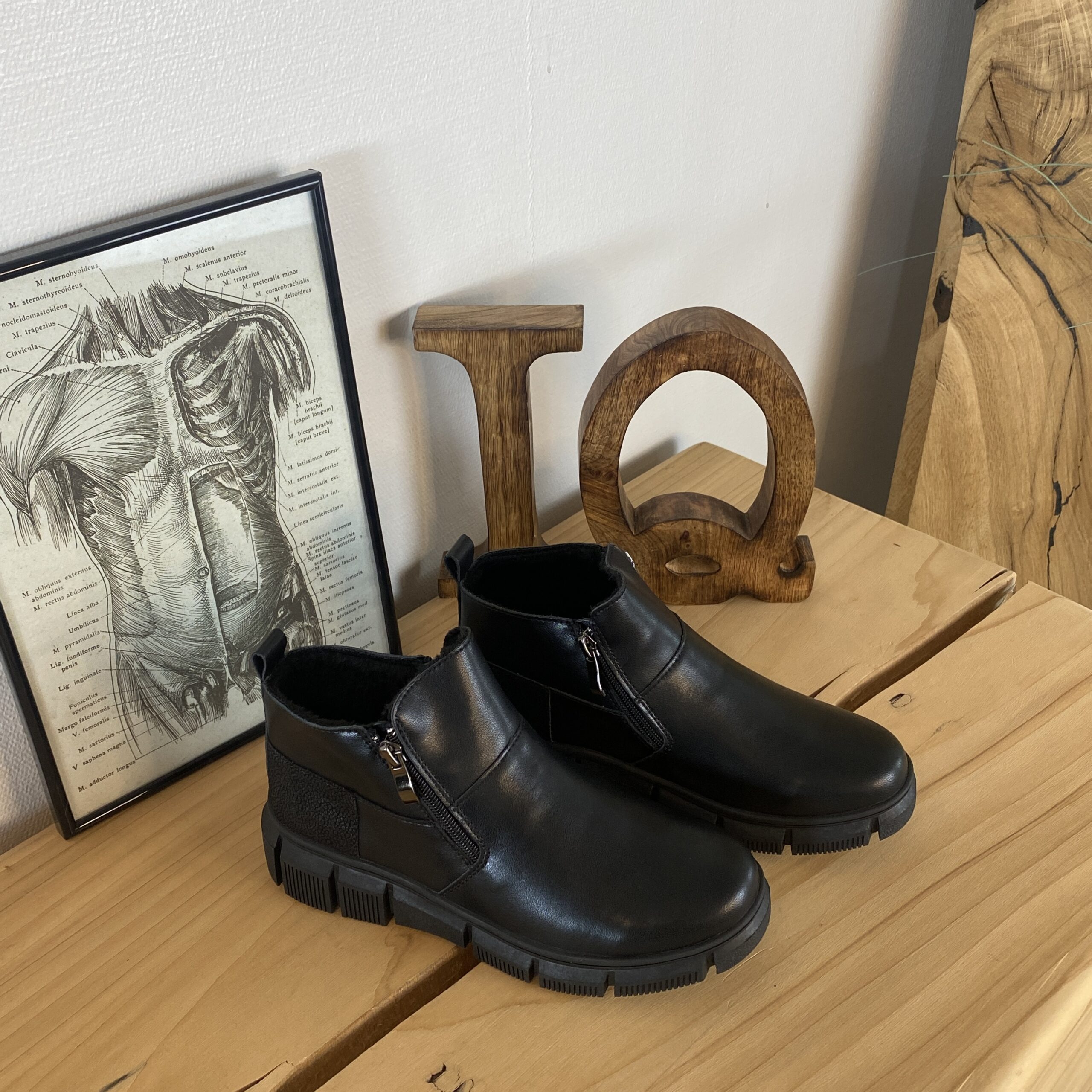 Sort læder ankelstøvle med for og dobbelt lynlås
