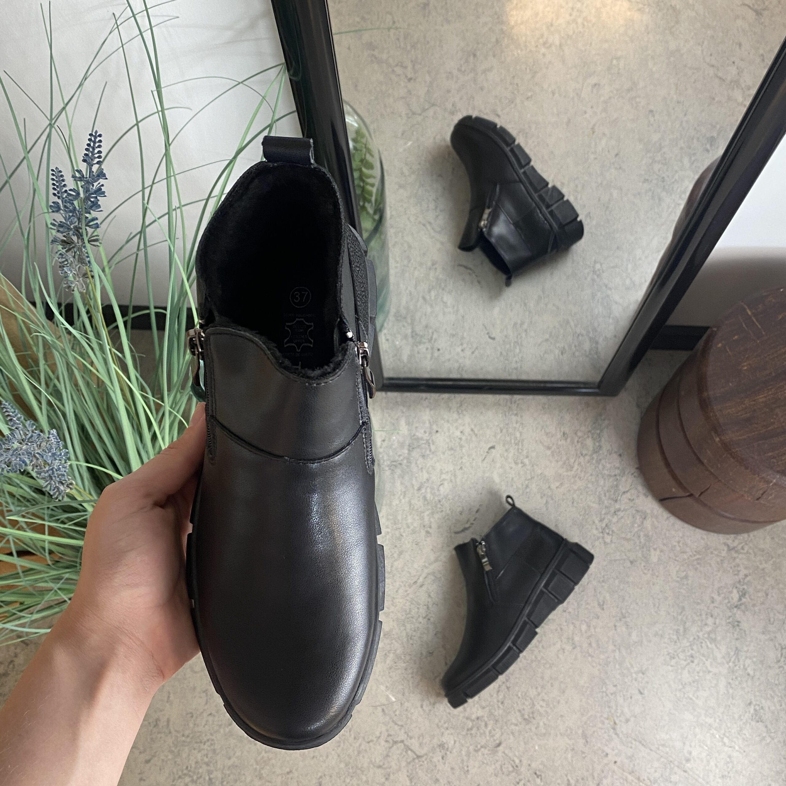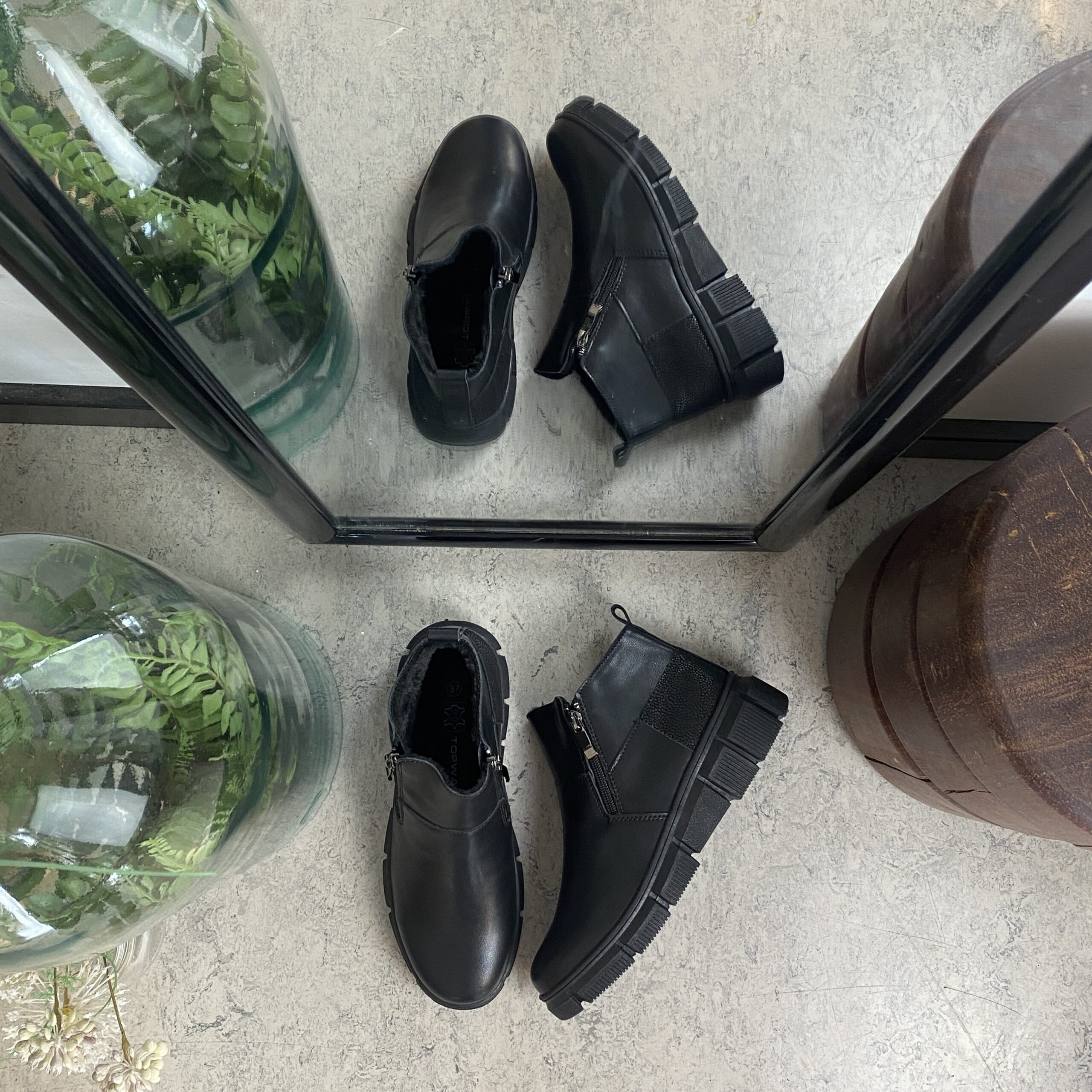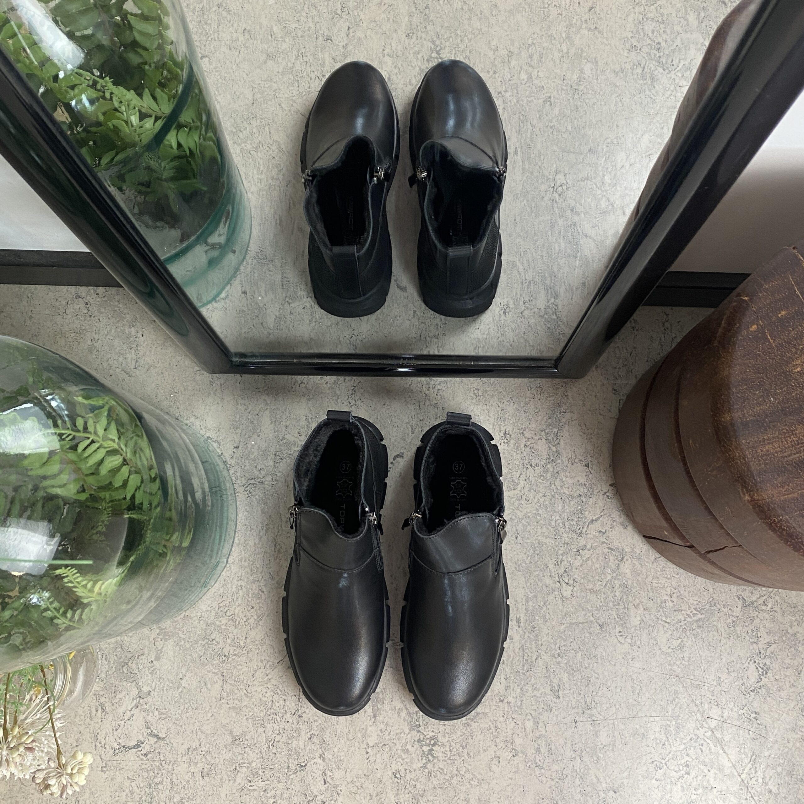 Denne sorte ankelstøvle kombinere klassisk design med praktiske detaljer. Støvlen er foret med blødt og varmt for, som sikre komfort i de kolde måneder.