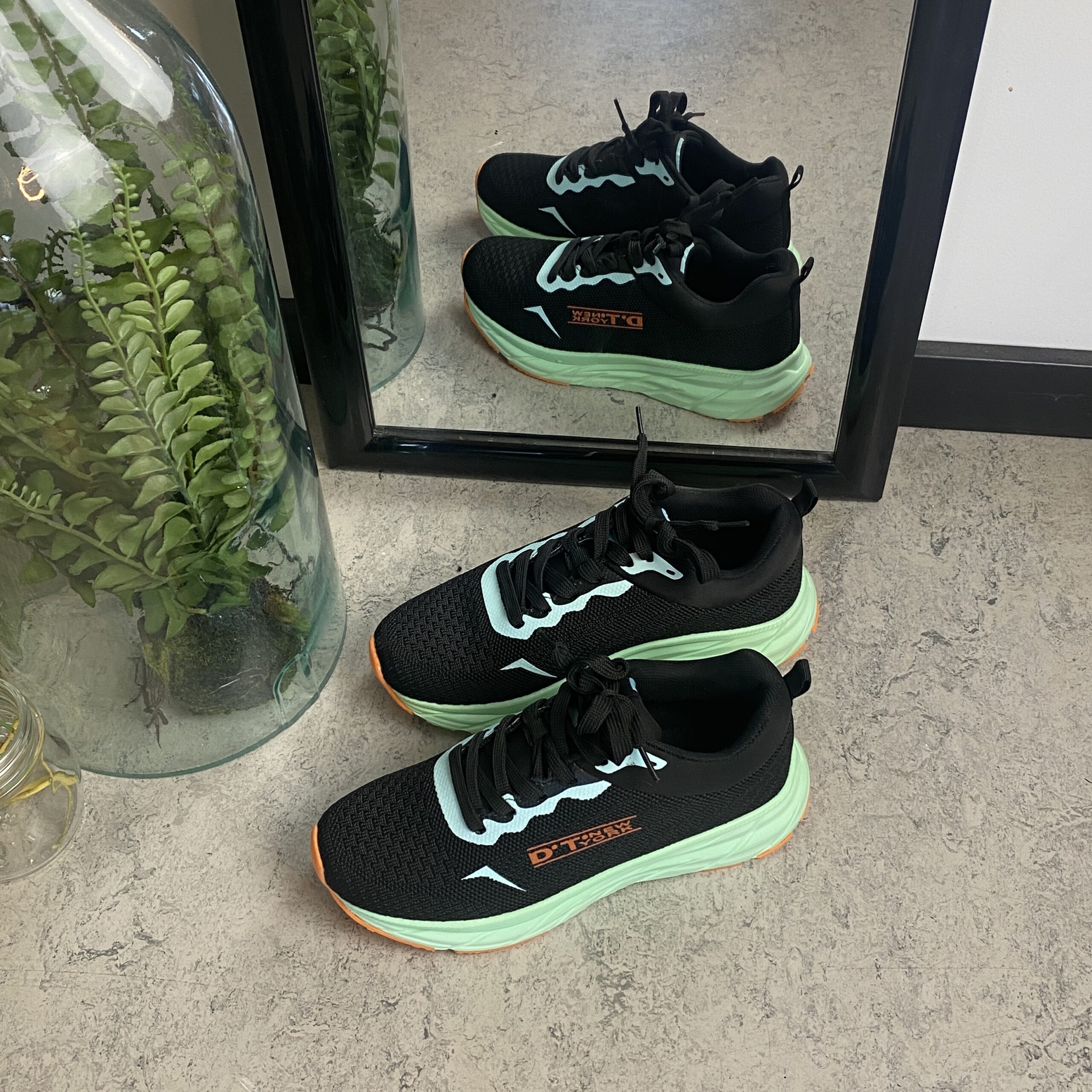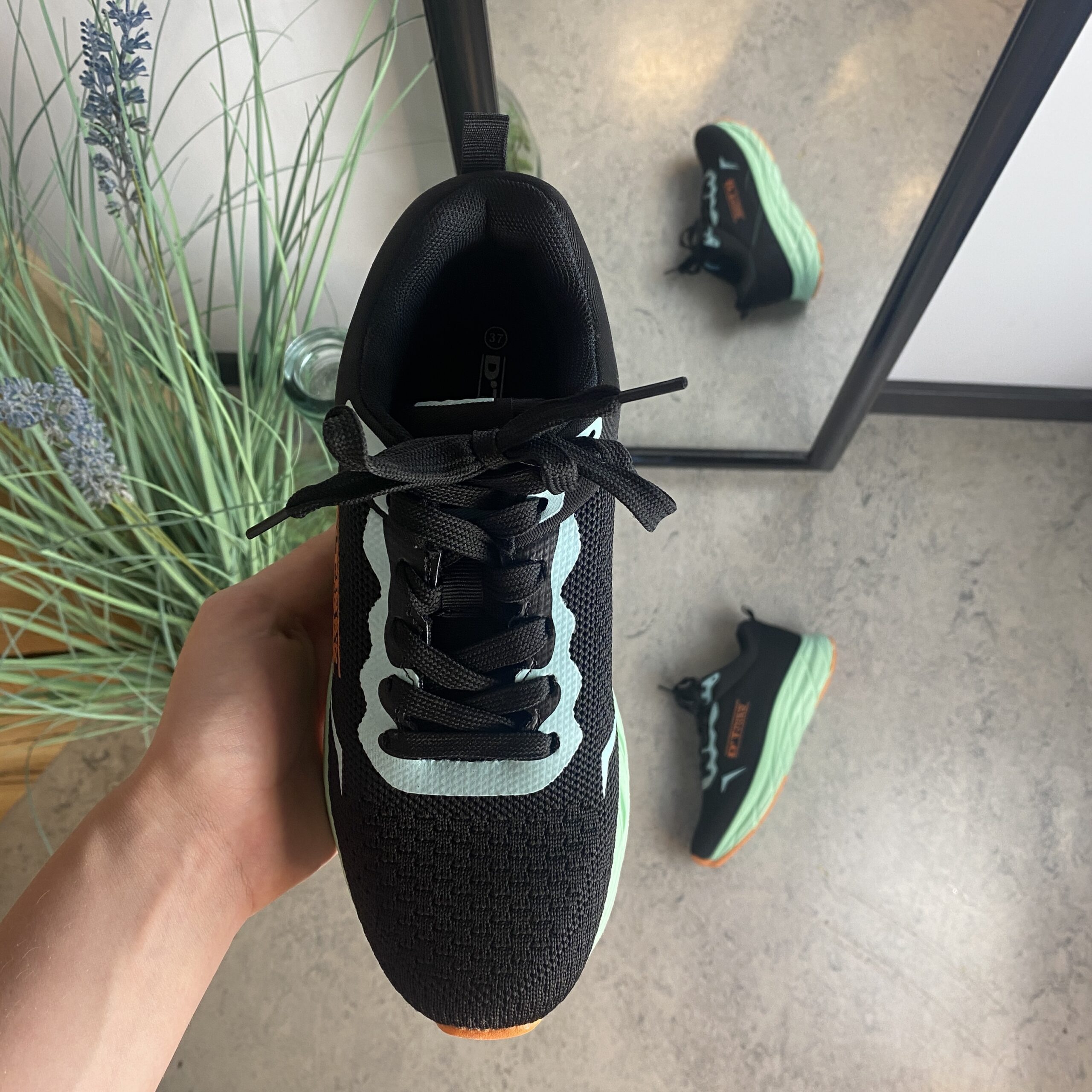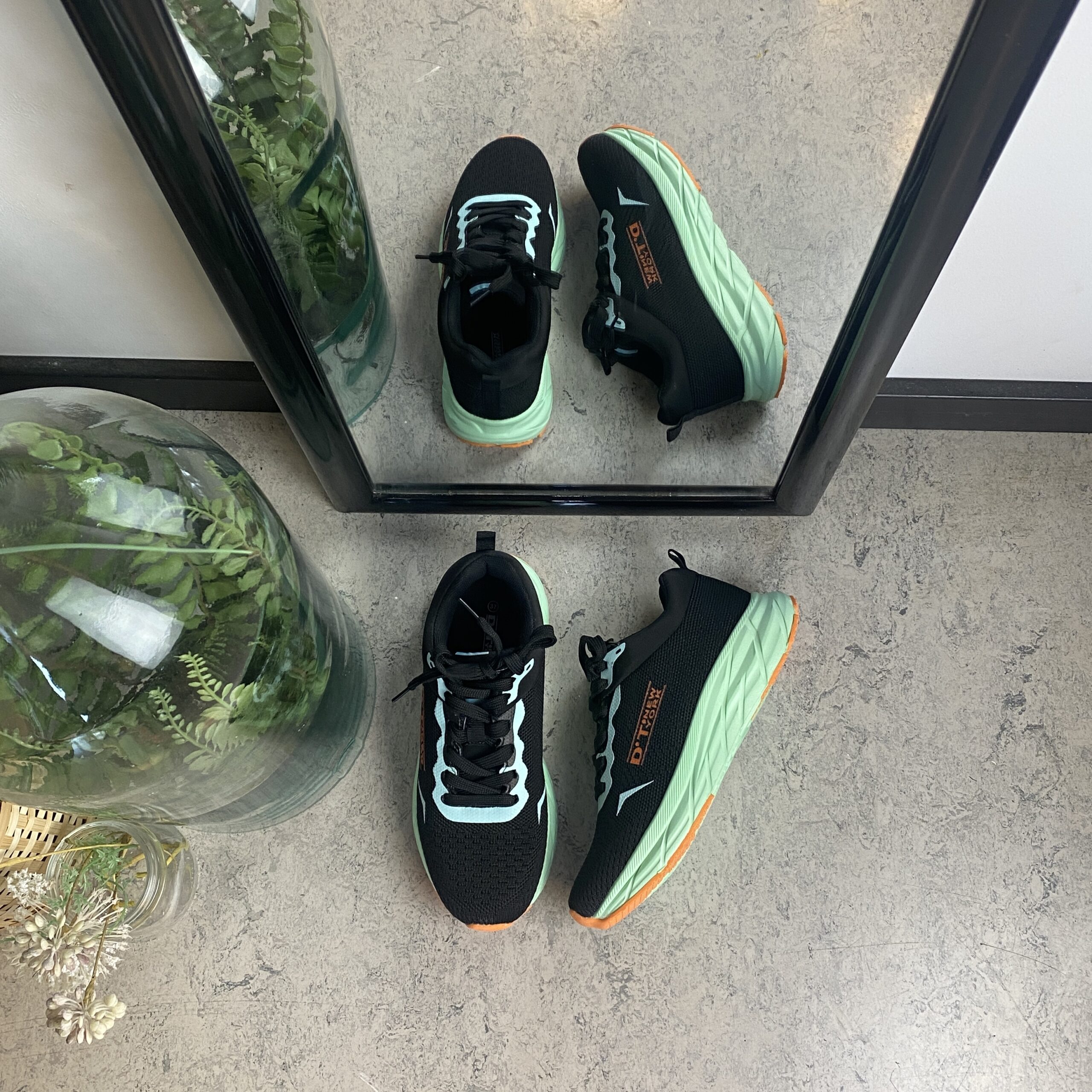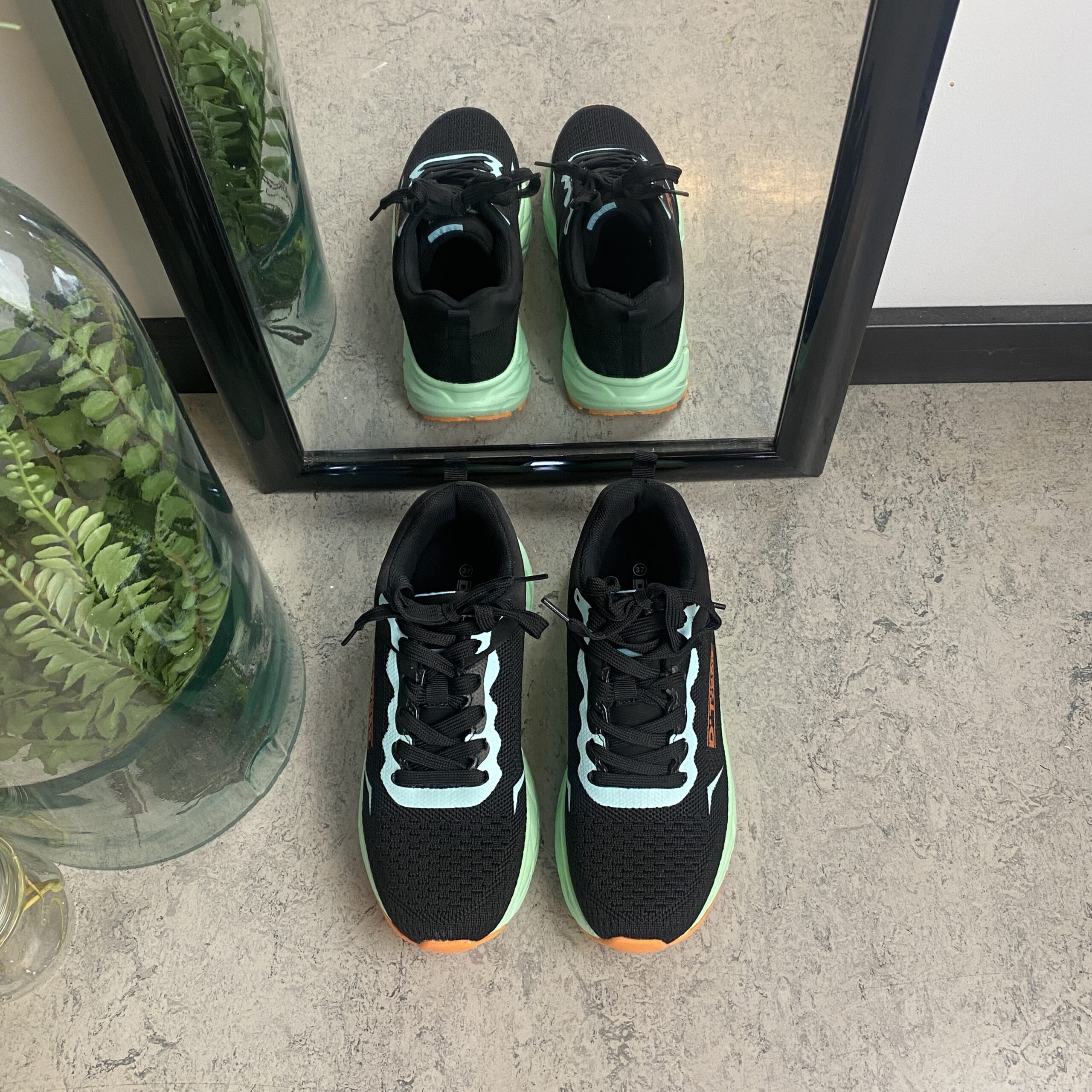 Mellemsålen i mintgrøn giver effektiv stødabsorbering, samtidig med at ydersålen sikrer et stabilt fodfæste på forskellige underlag.