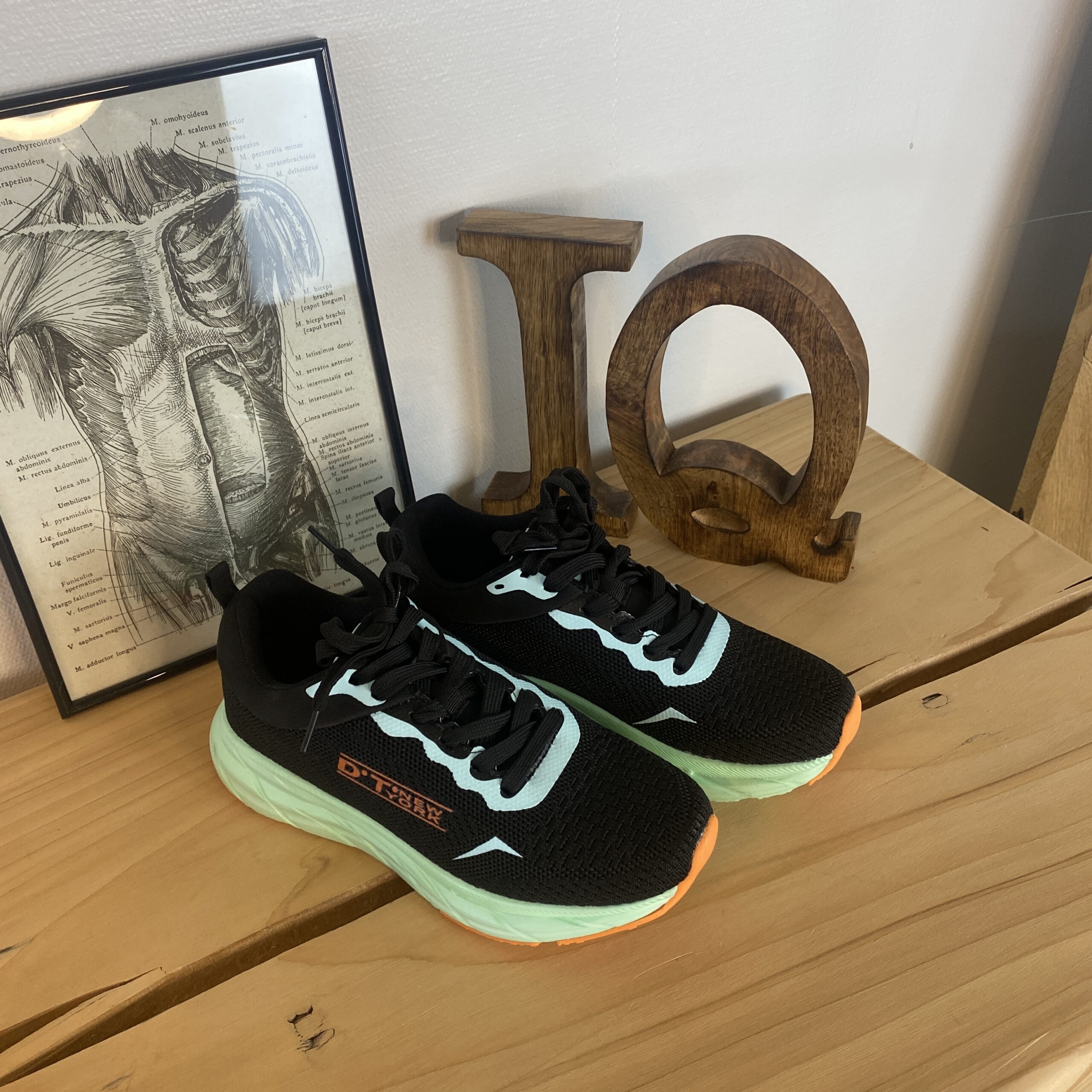 Sort letvægtssko med stødabsorberende sål