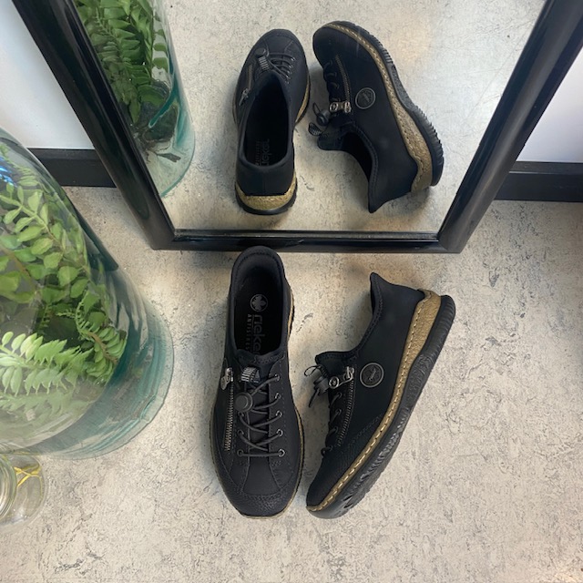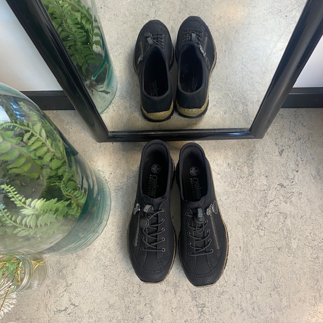Sort Rieker slip-on sneakers til damer tilbyder en perfekt kombination af stil og funktionalitet.