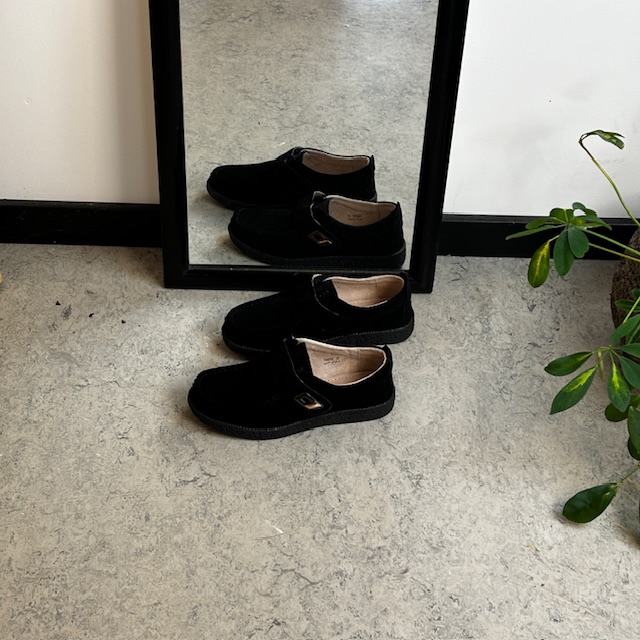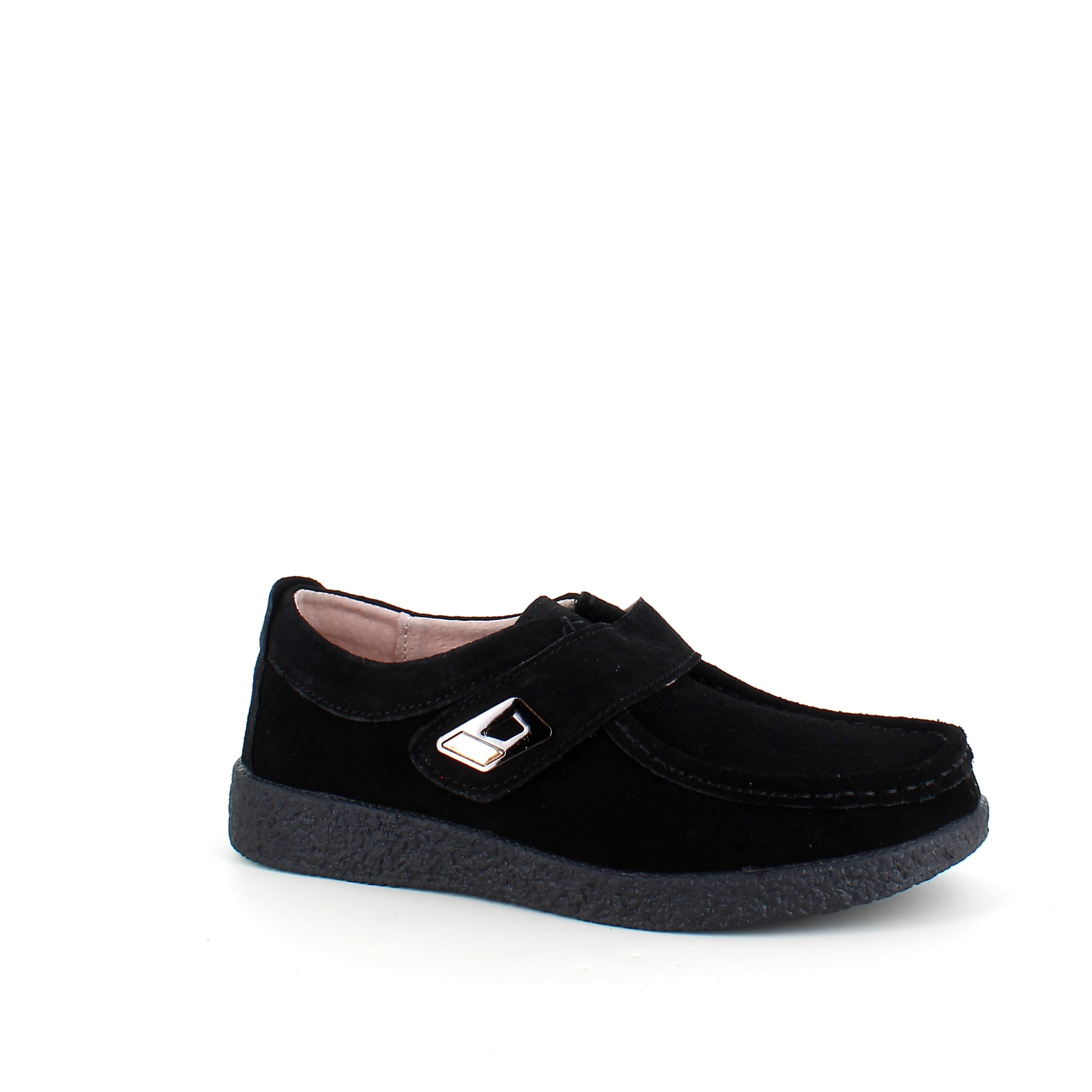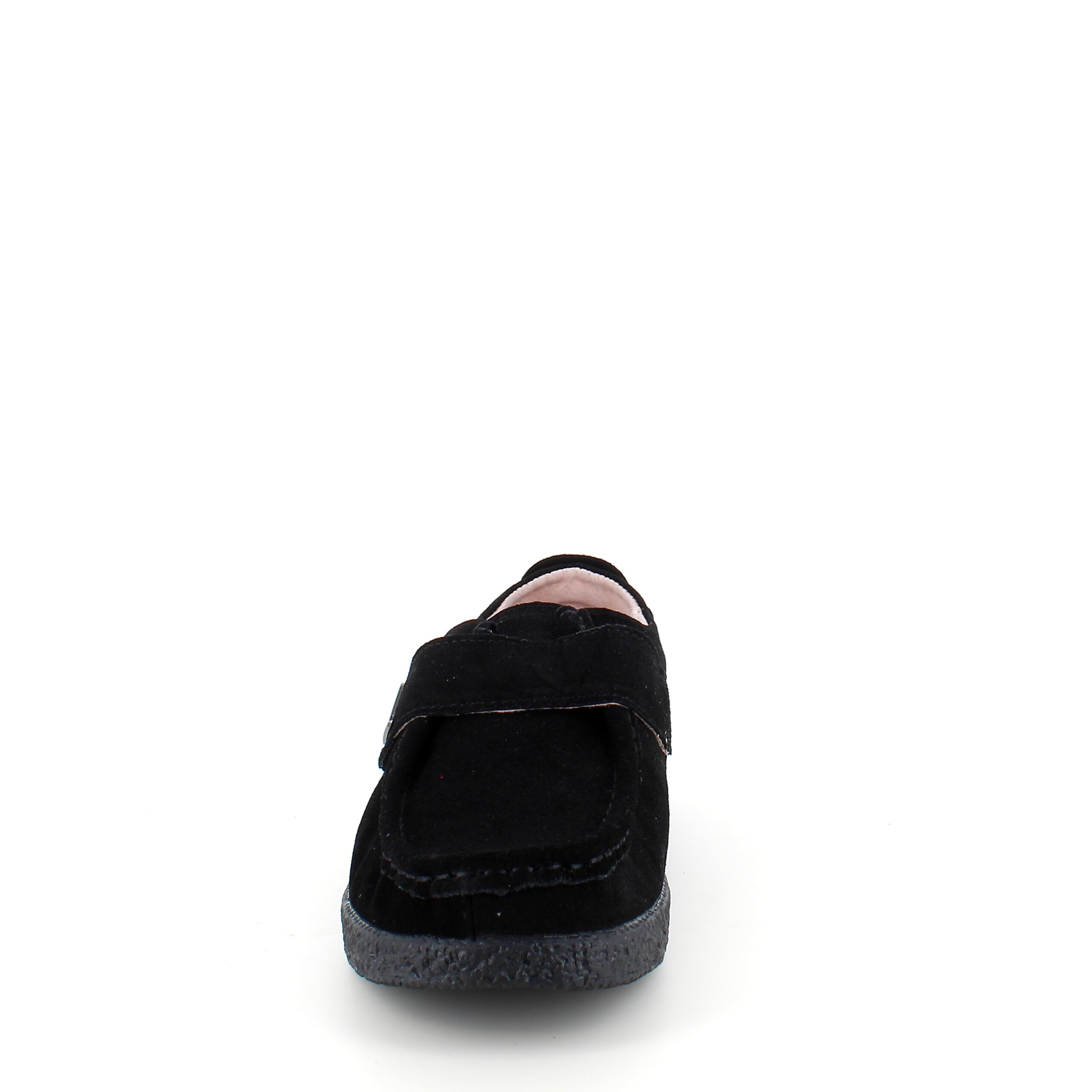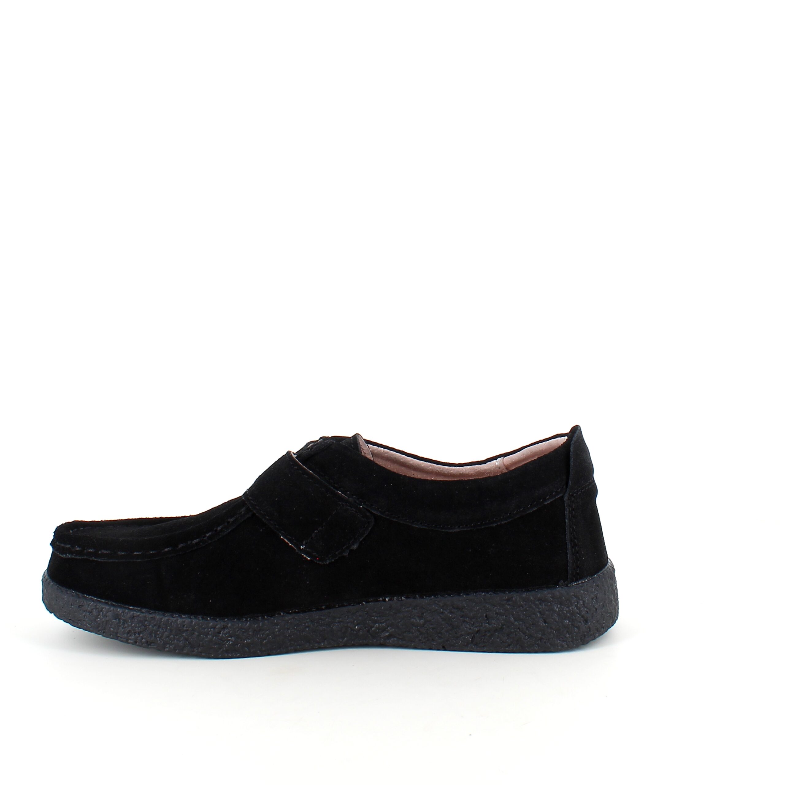 Sort ruskindssko med velcrolukning og gummisål