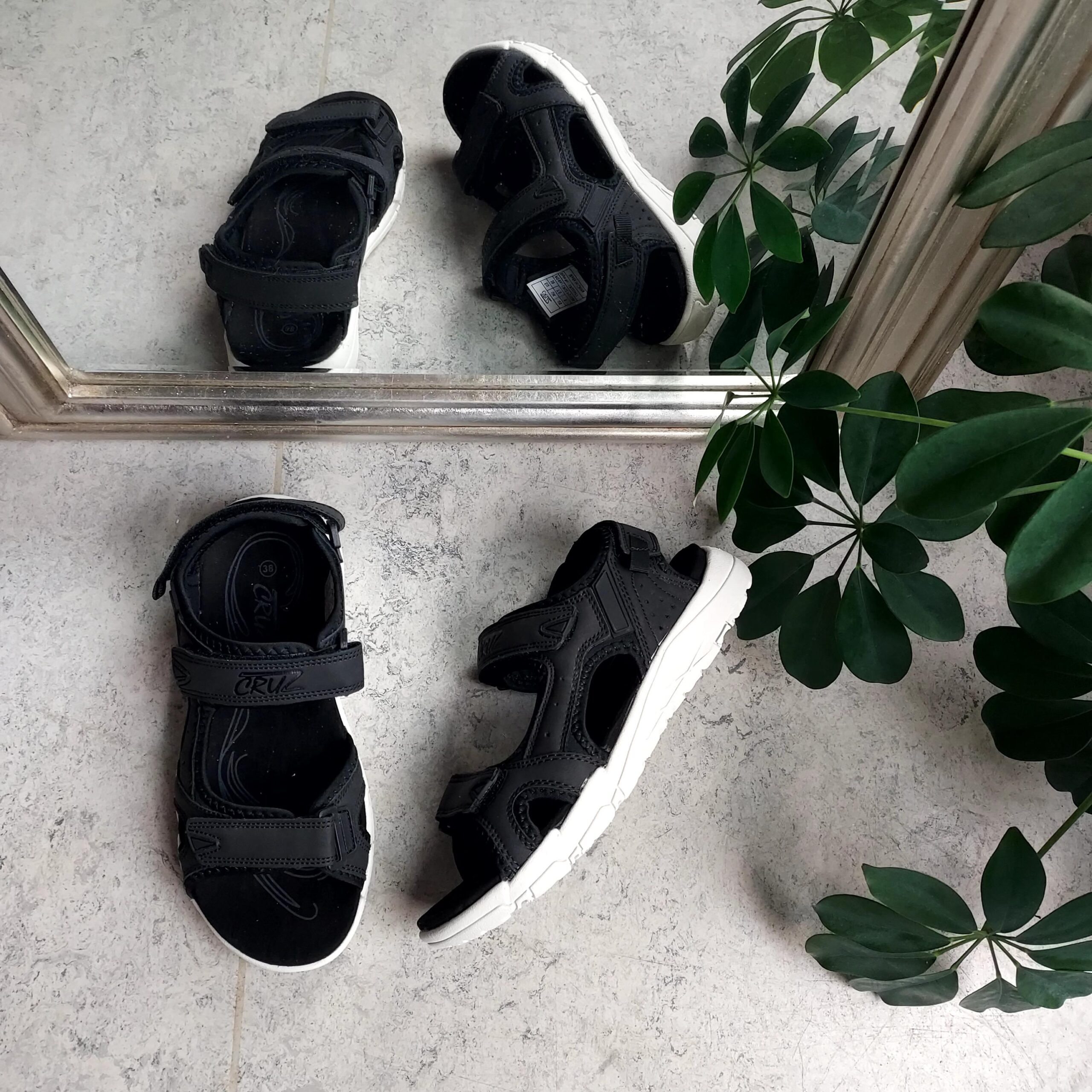 Sort letvægts sandal fra Cruz med velcrolukning på alle 3 remme.