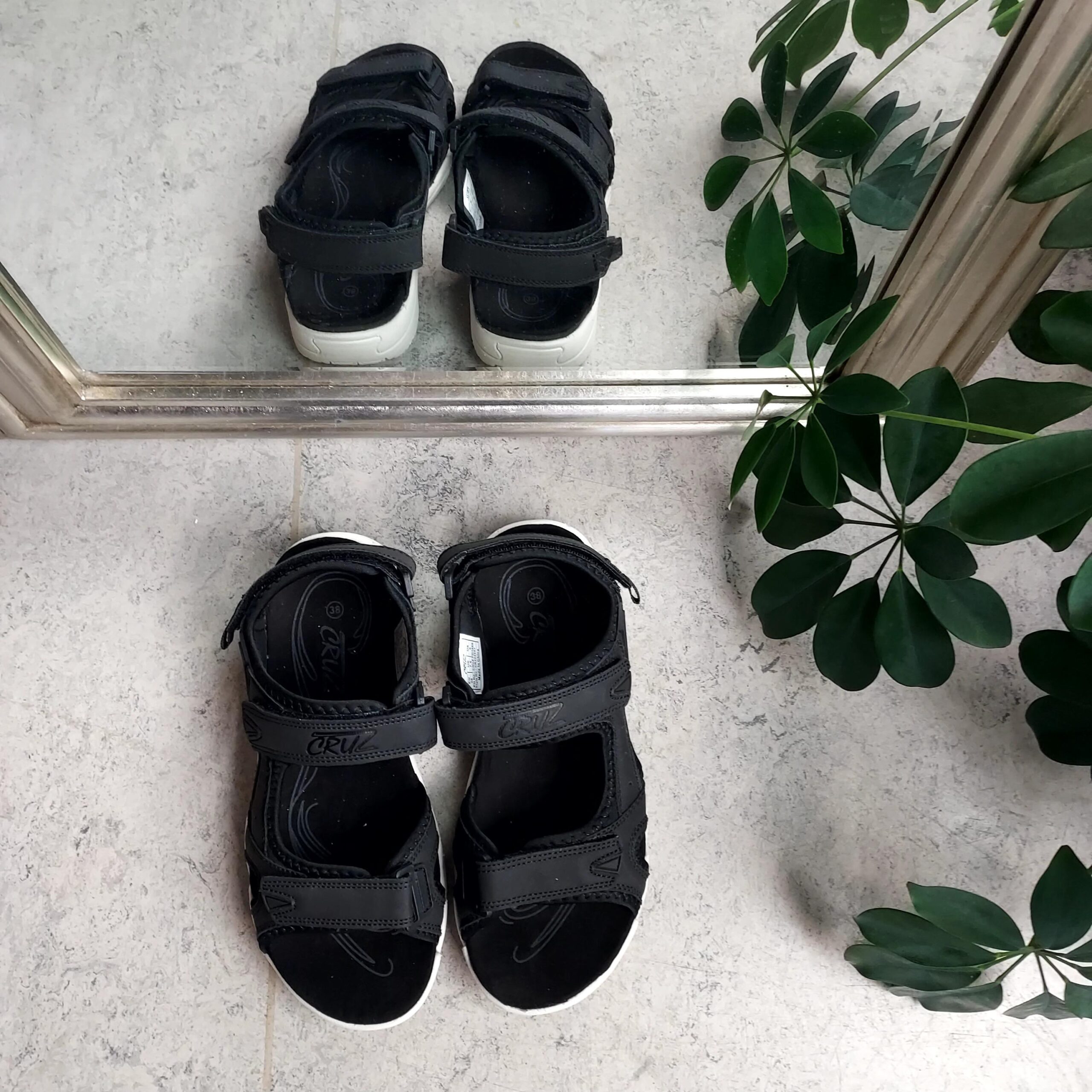 Sort sandal fra Cruz med velcro lukning på alle 3 remme.