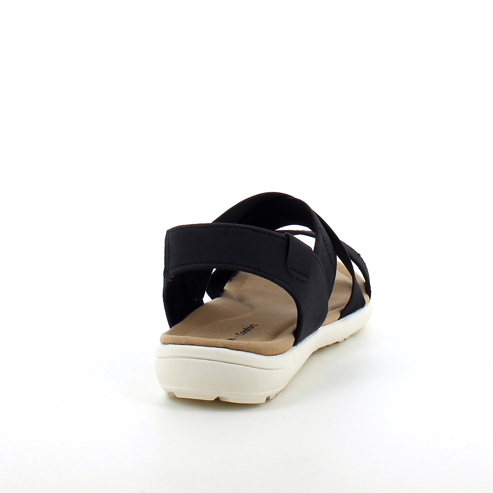 Sandal i sort med bred elastik over vristen.