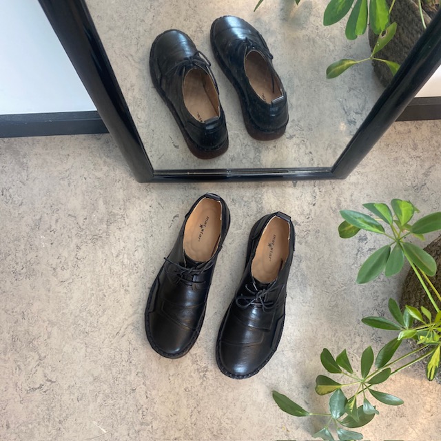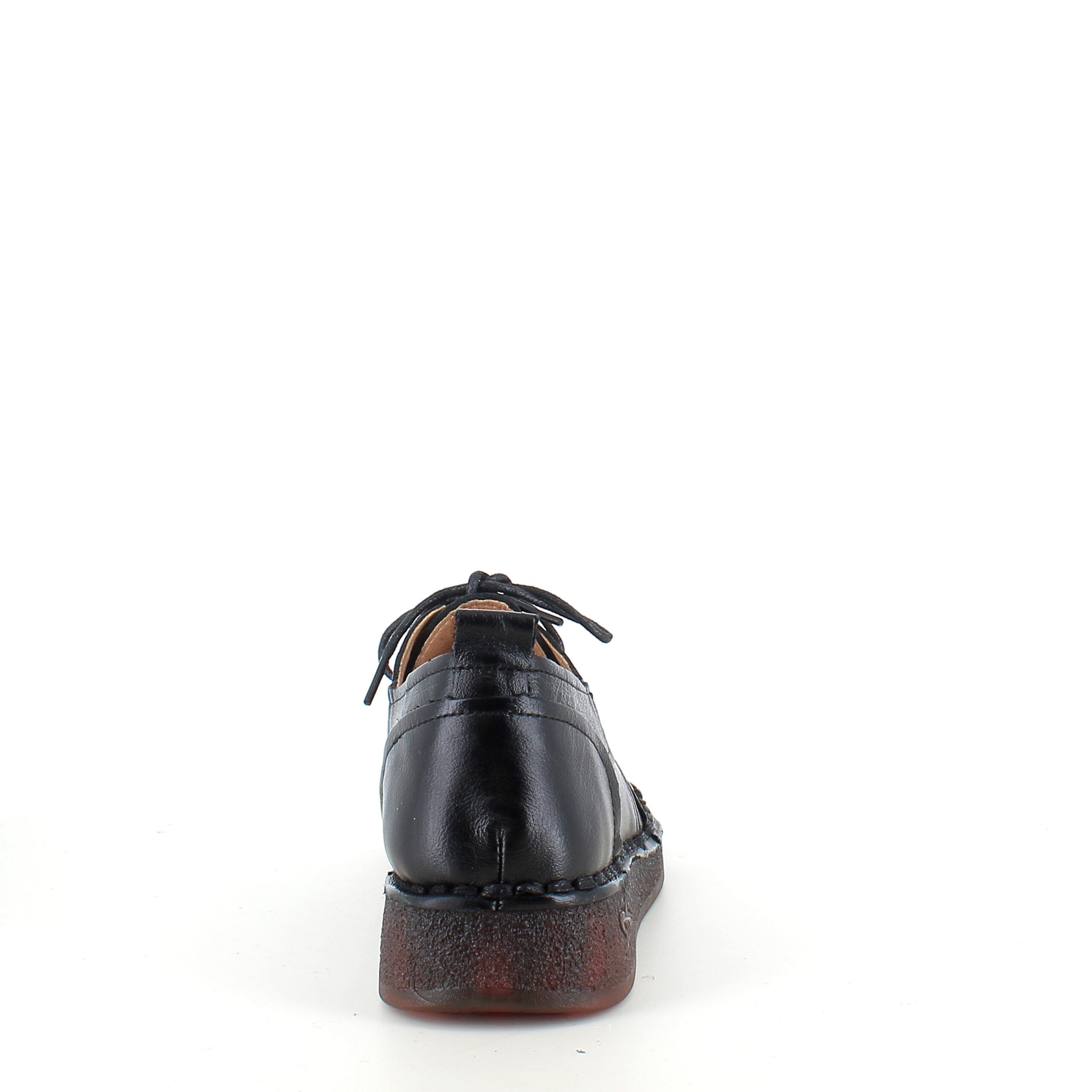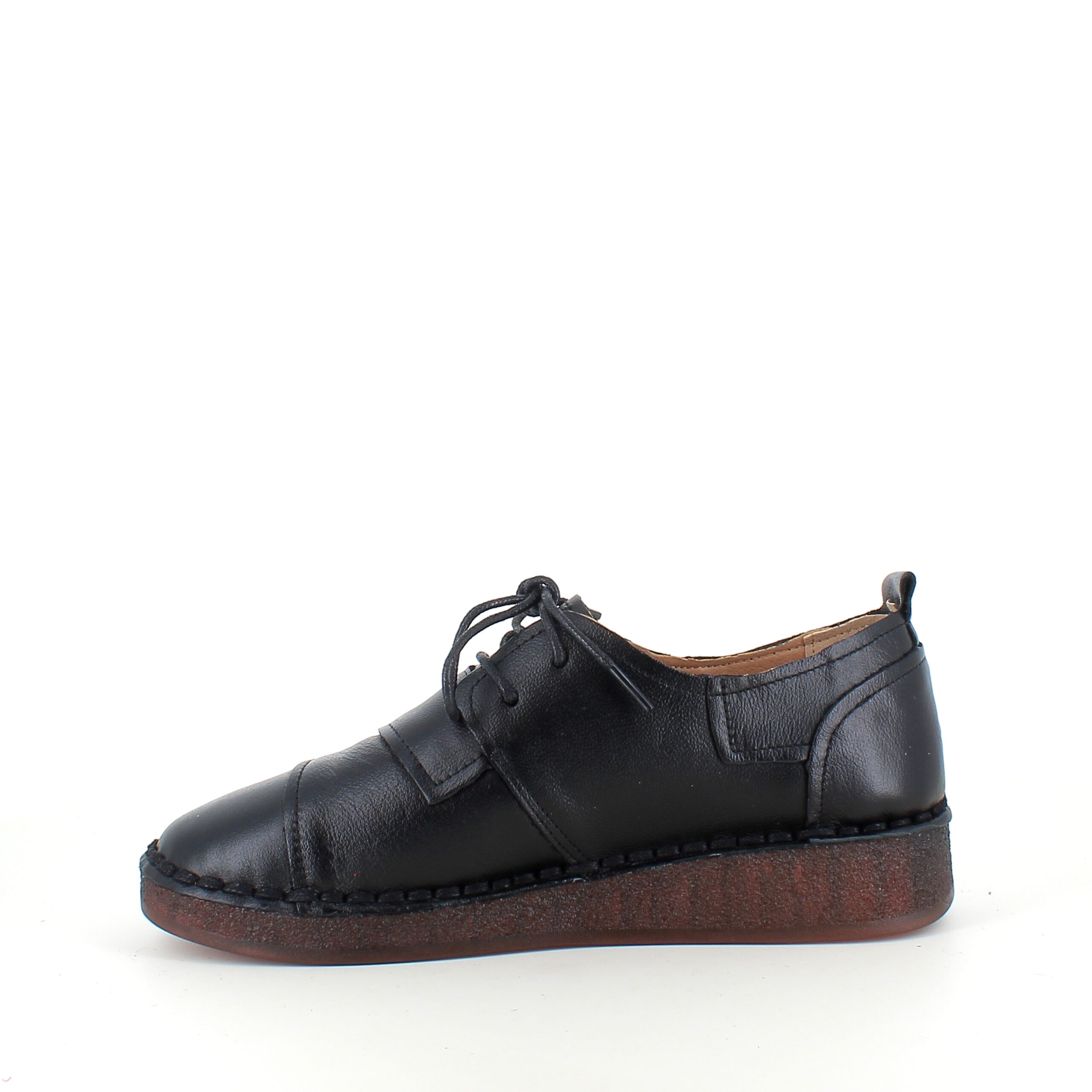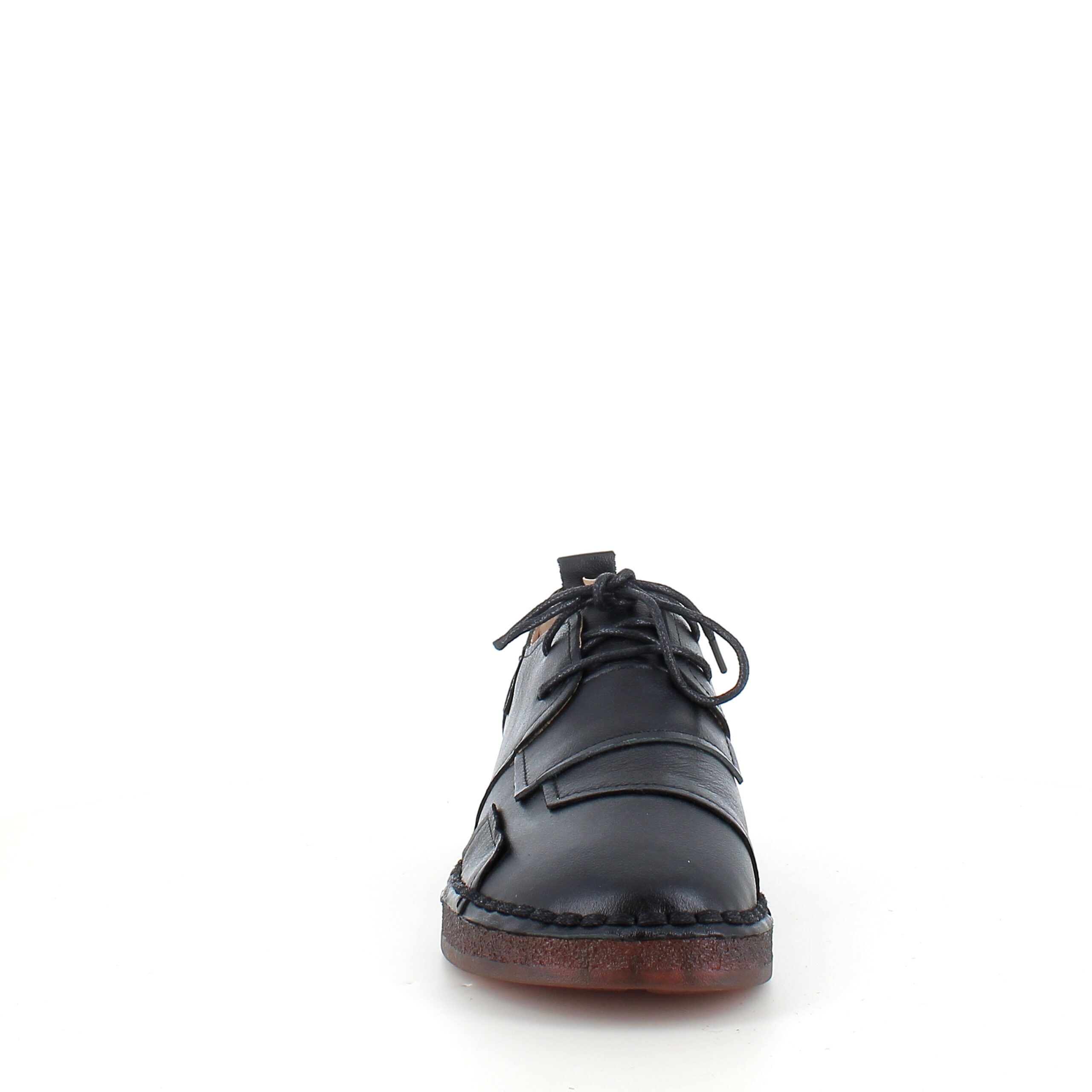 Snøresko i sort skind med flotte detaljer i sammensyningen af skindet på overdelen af skoen