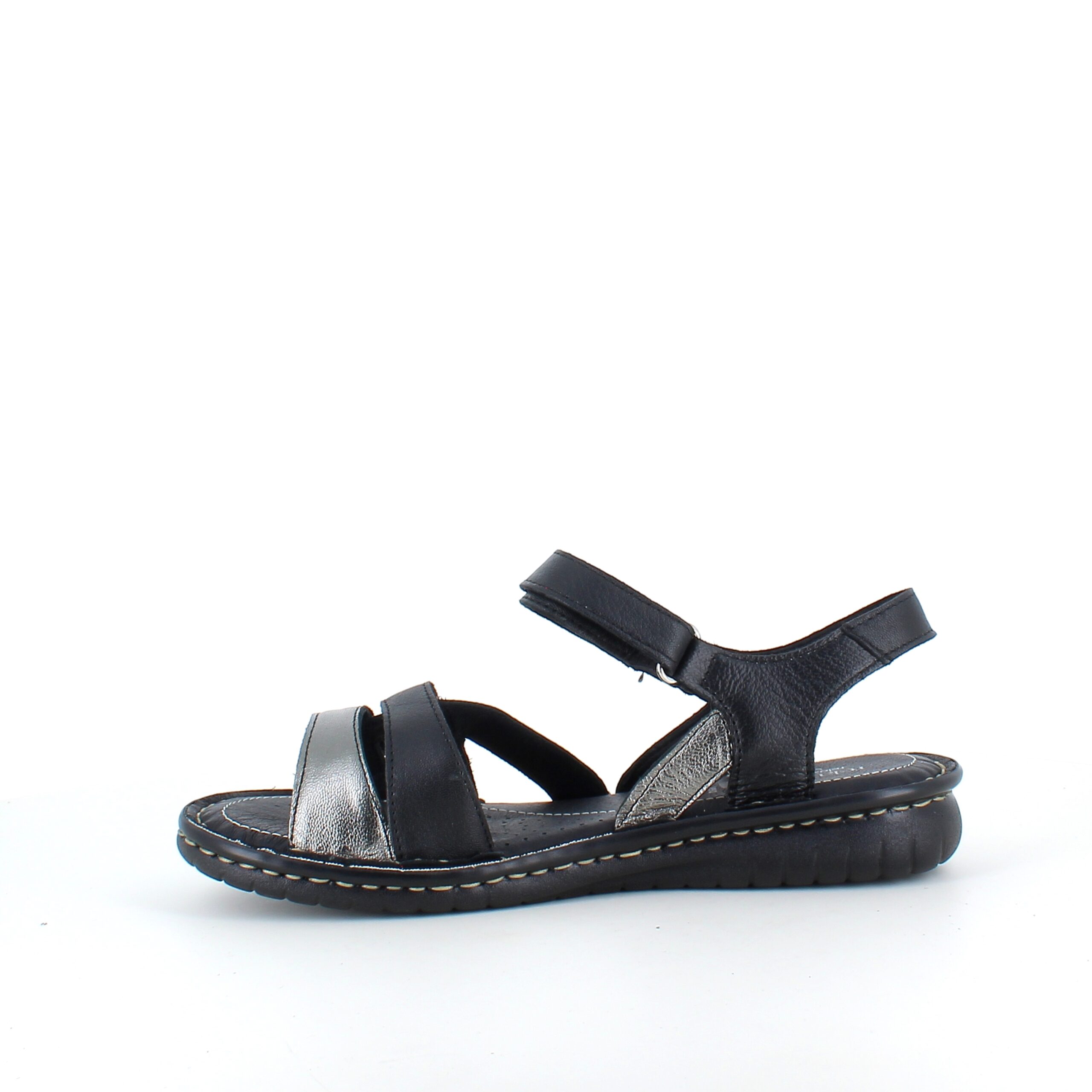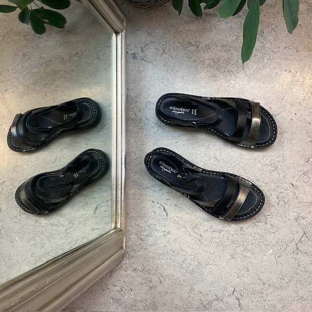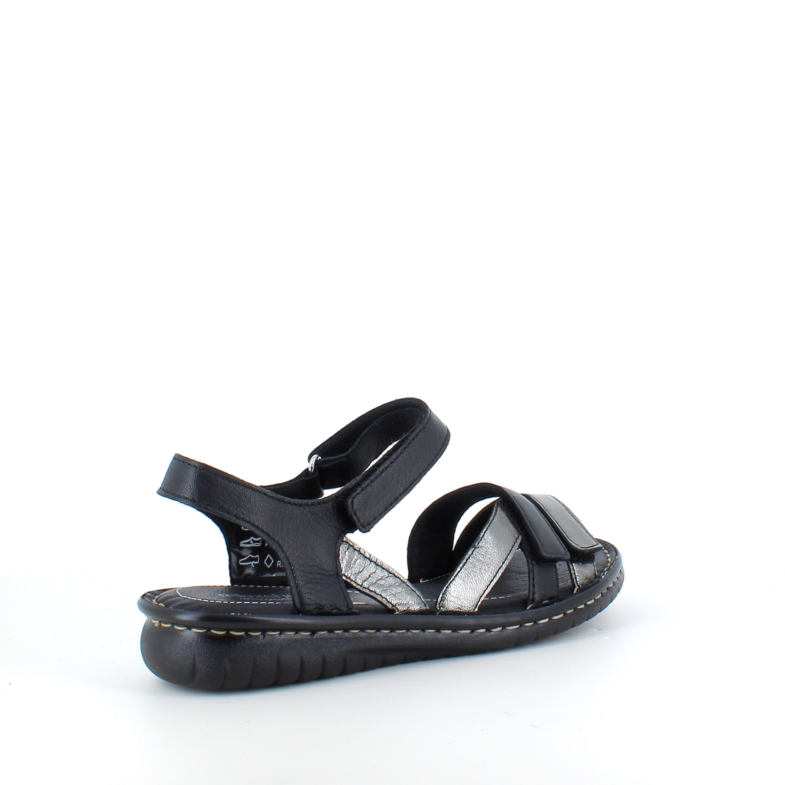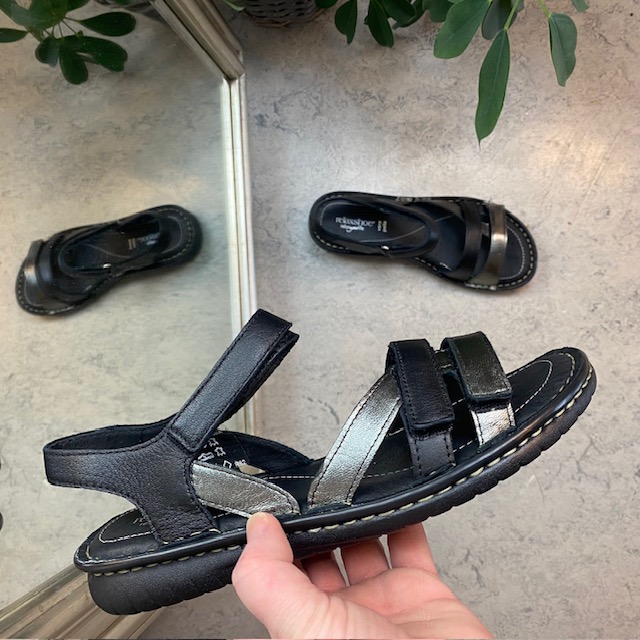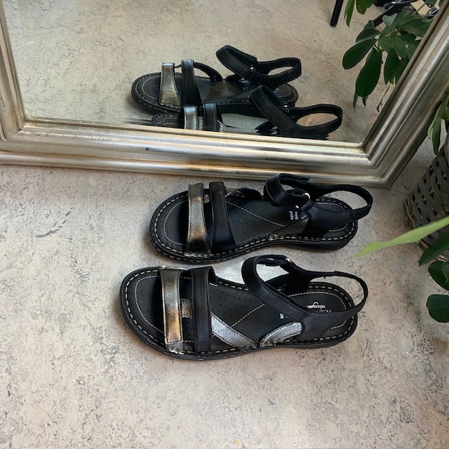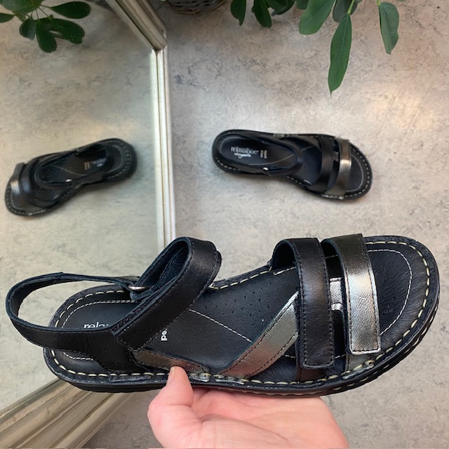 Sort skindsandal med tre remme og metallic detaljer fra Relaxshoe