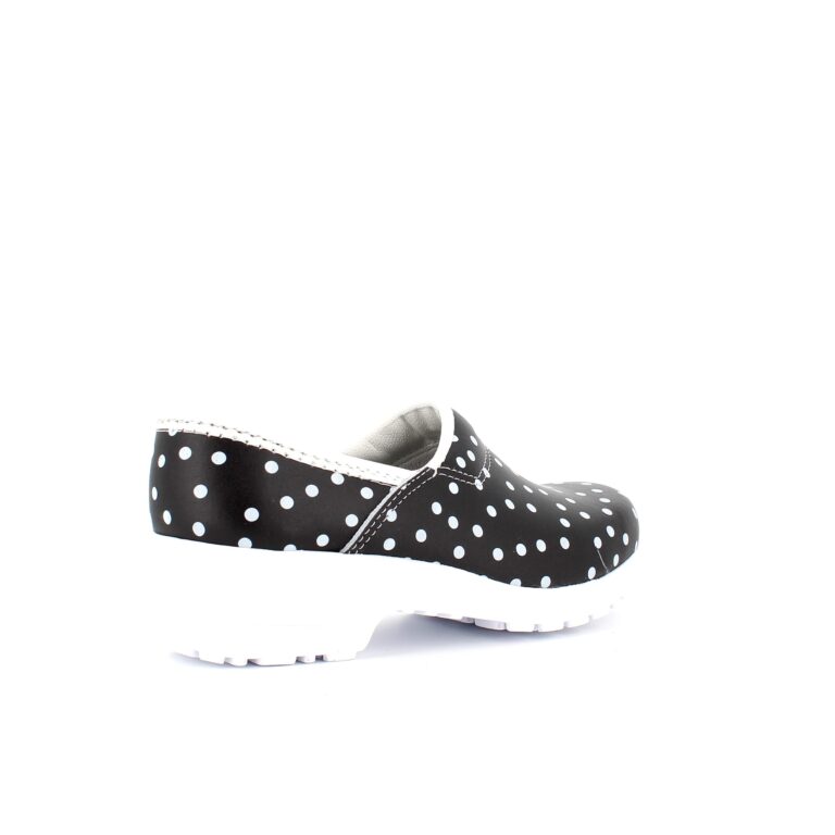 Sort træsko med polkaprikker og kap