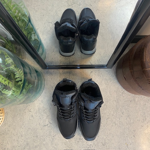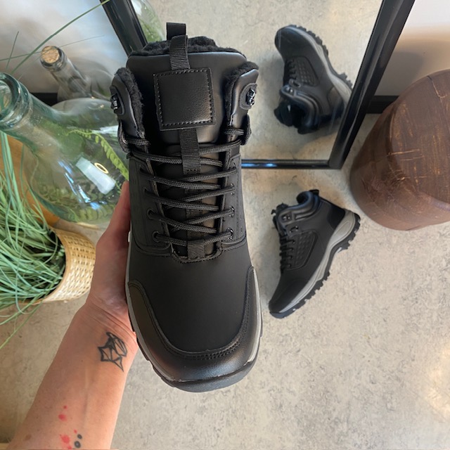 Sort vandafvisende herreankelstøvle med varmt for, robust TPR-sål og lynlås i siden