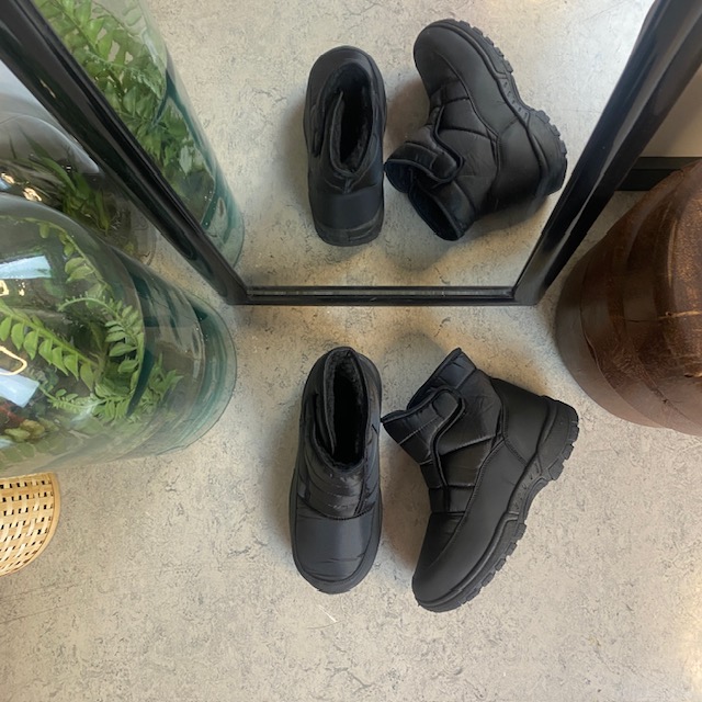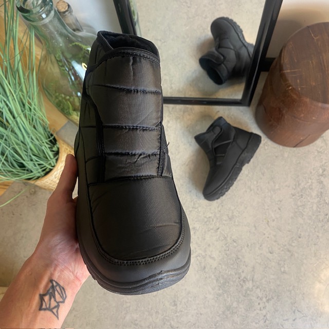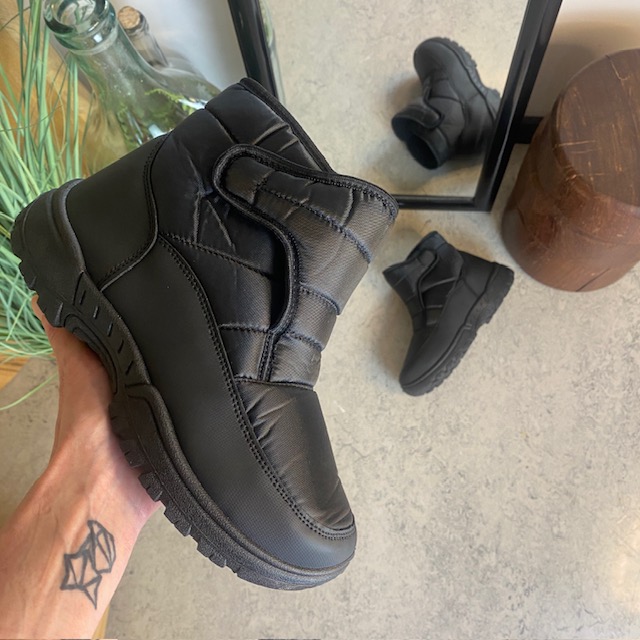 Sort vatteret ankelstøvle med fleecefor og praktisk velcroåbning.