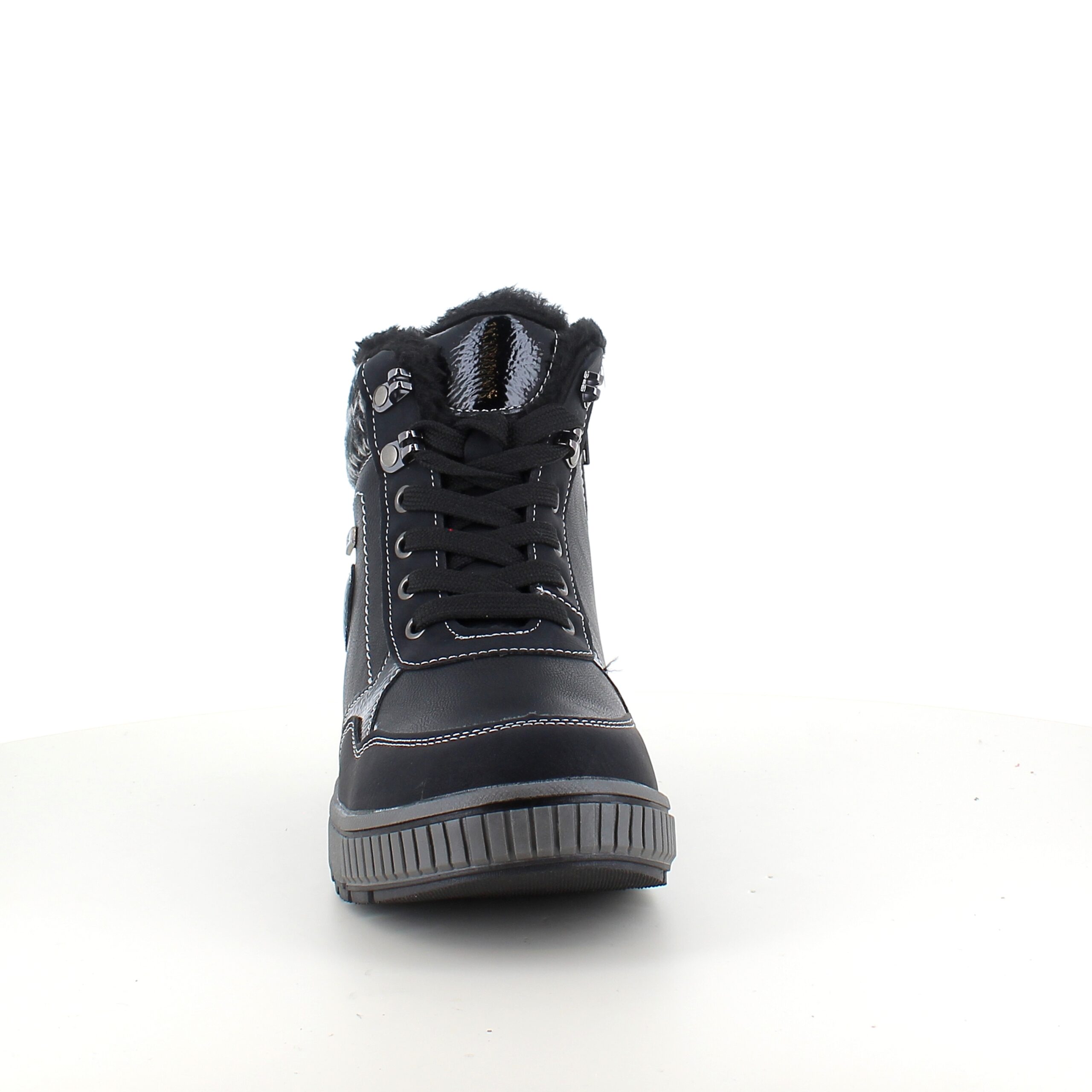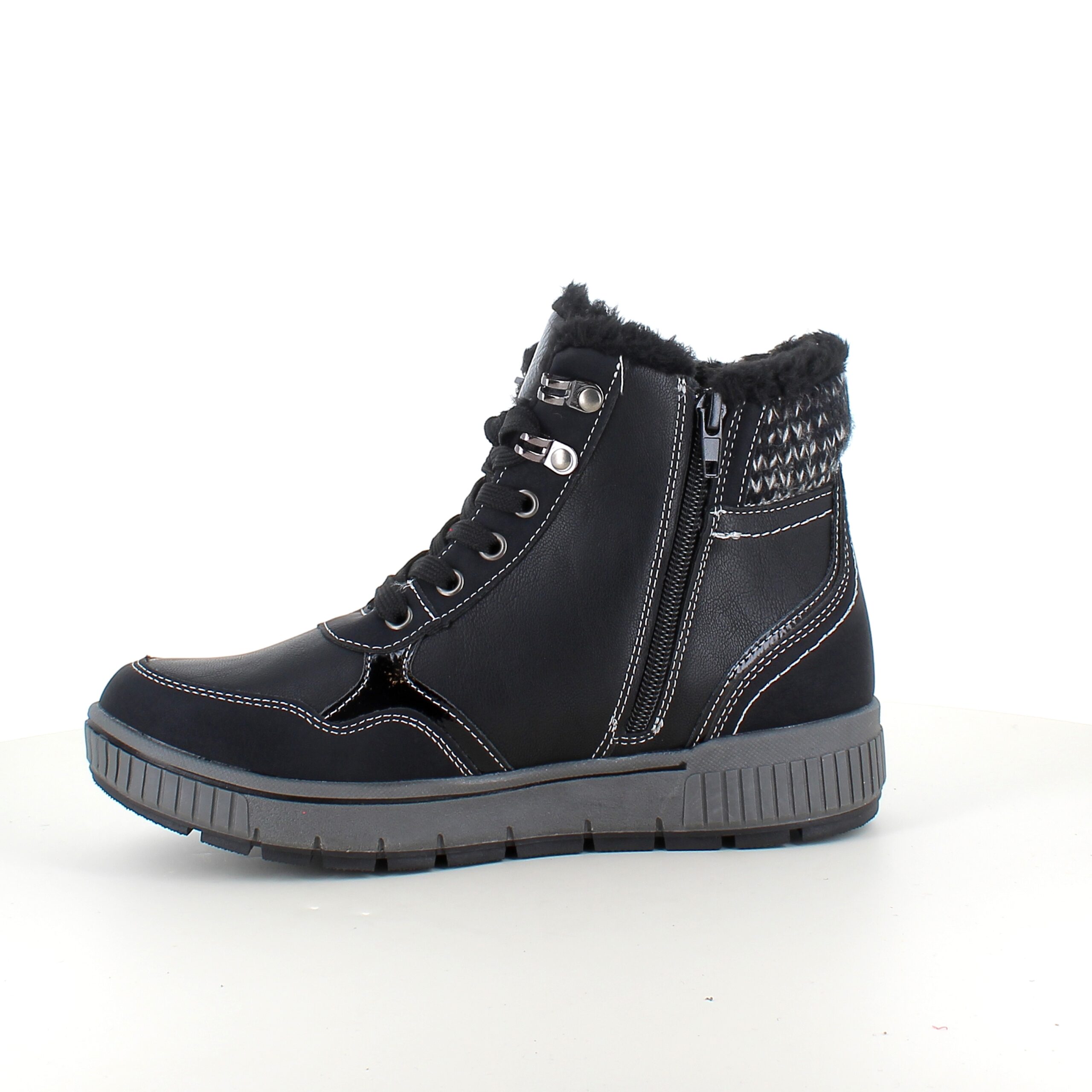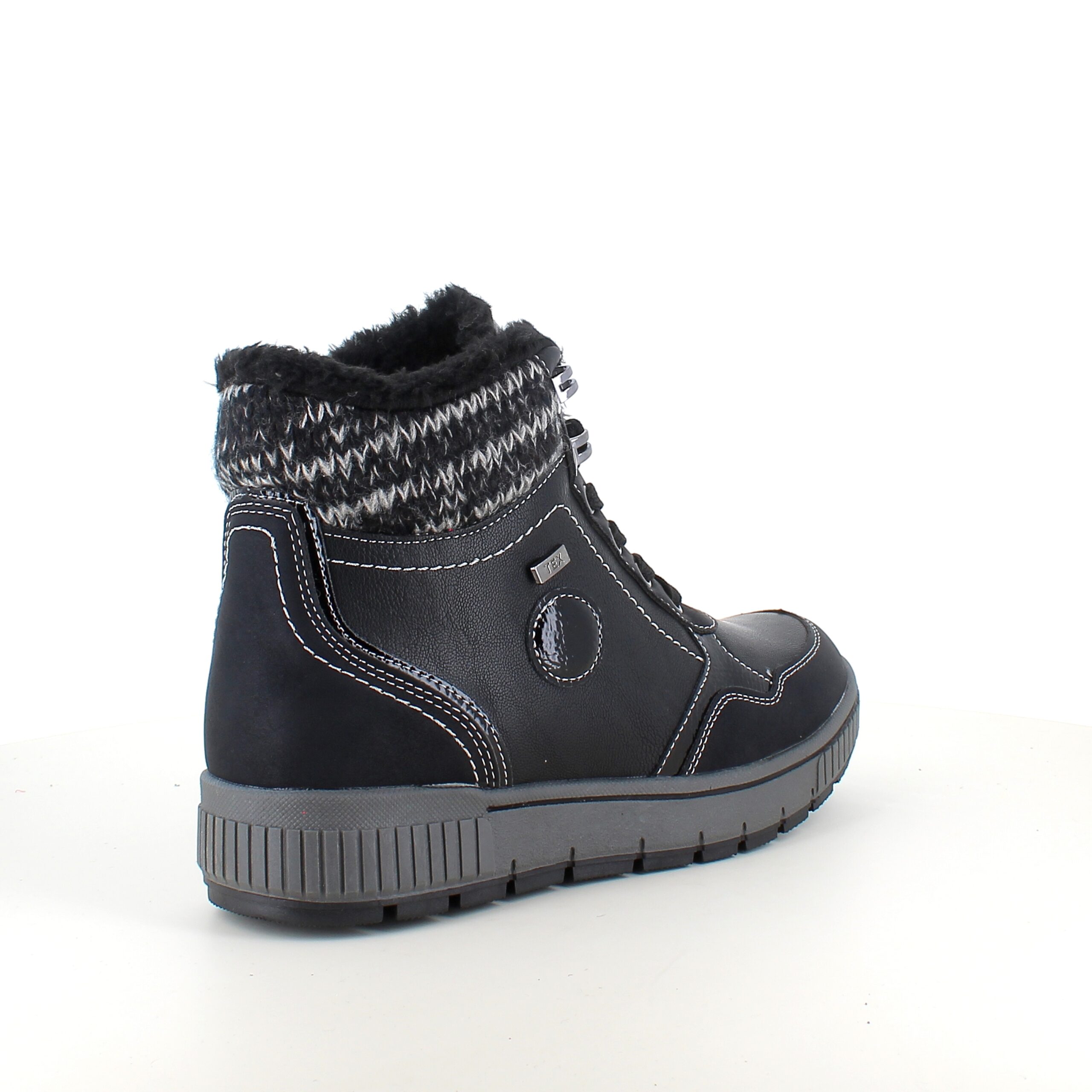 Vinterstøvle i sort, med strikket detalje på skaftet.
