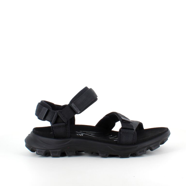 Sandalen er udstyret med en track-sål, tre justerbare velcrostropper for optimal pasform, og er fremstillet af slidstærke materialer,