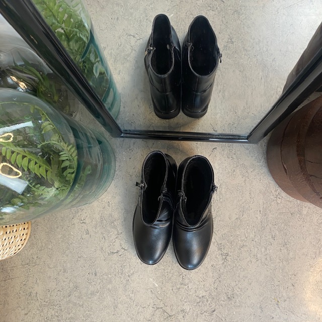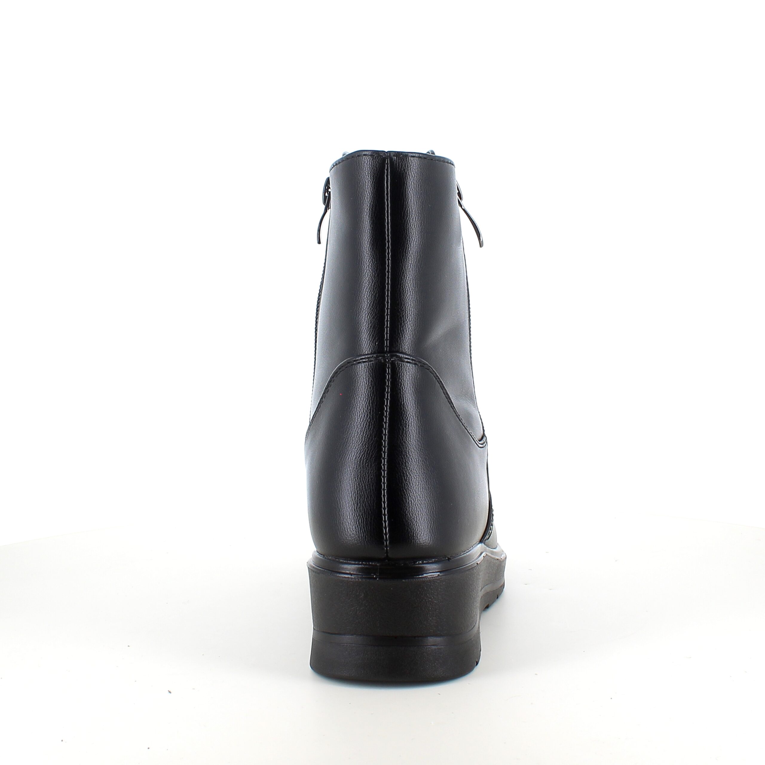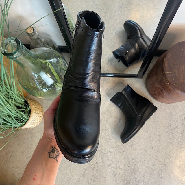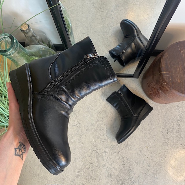 Praktiske og elegante damestøvletter i sort PU med varmt for, der holder fødderne behagelige selv på kolde vinterdage.