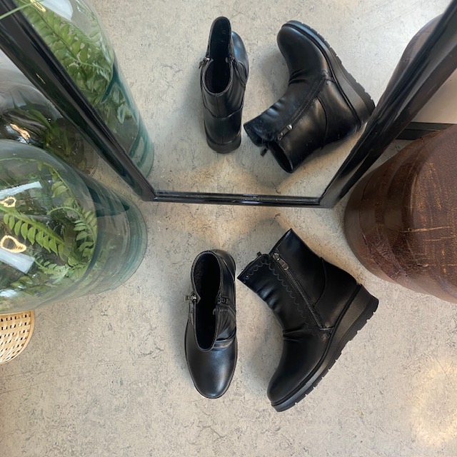 Den let rynkede front og diskrete mønsterdetaljer giver støvletten et feminint udtryk, der passer til både hverdag og pænere anledninger.
