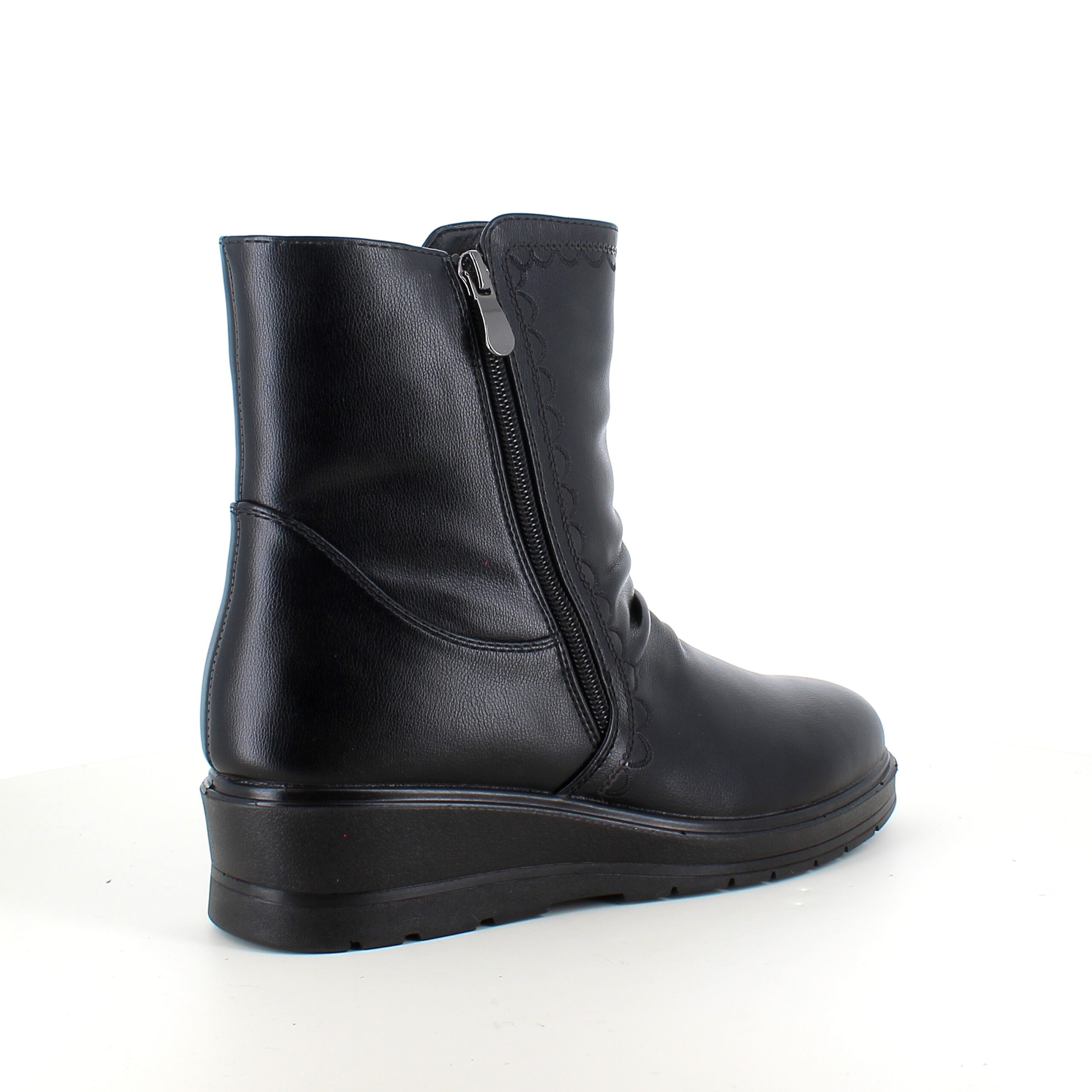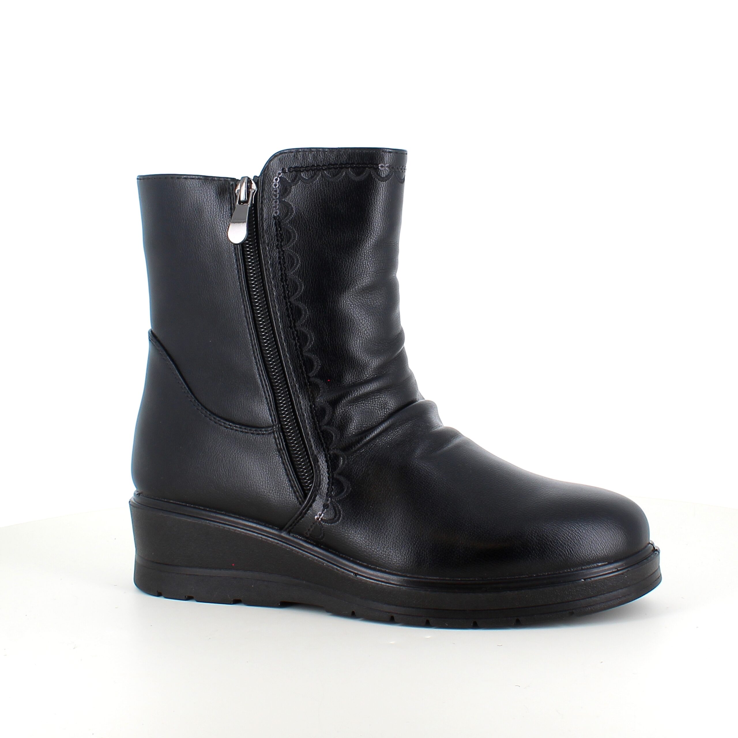 Sorte damestøvletter med varmt for og 2 lynlåse – komfortabel PU-sål og praktisk design