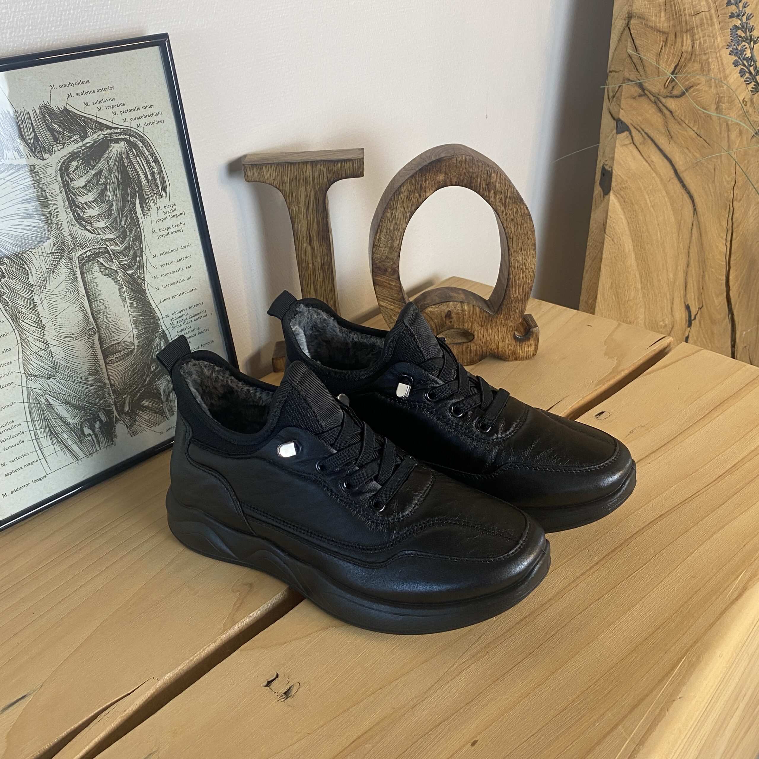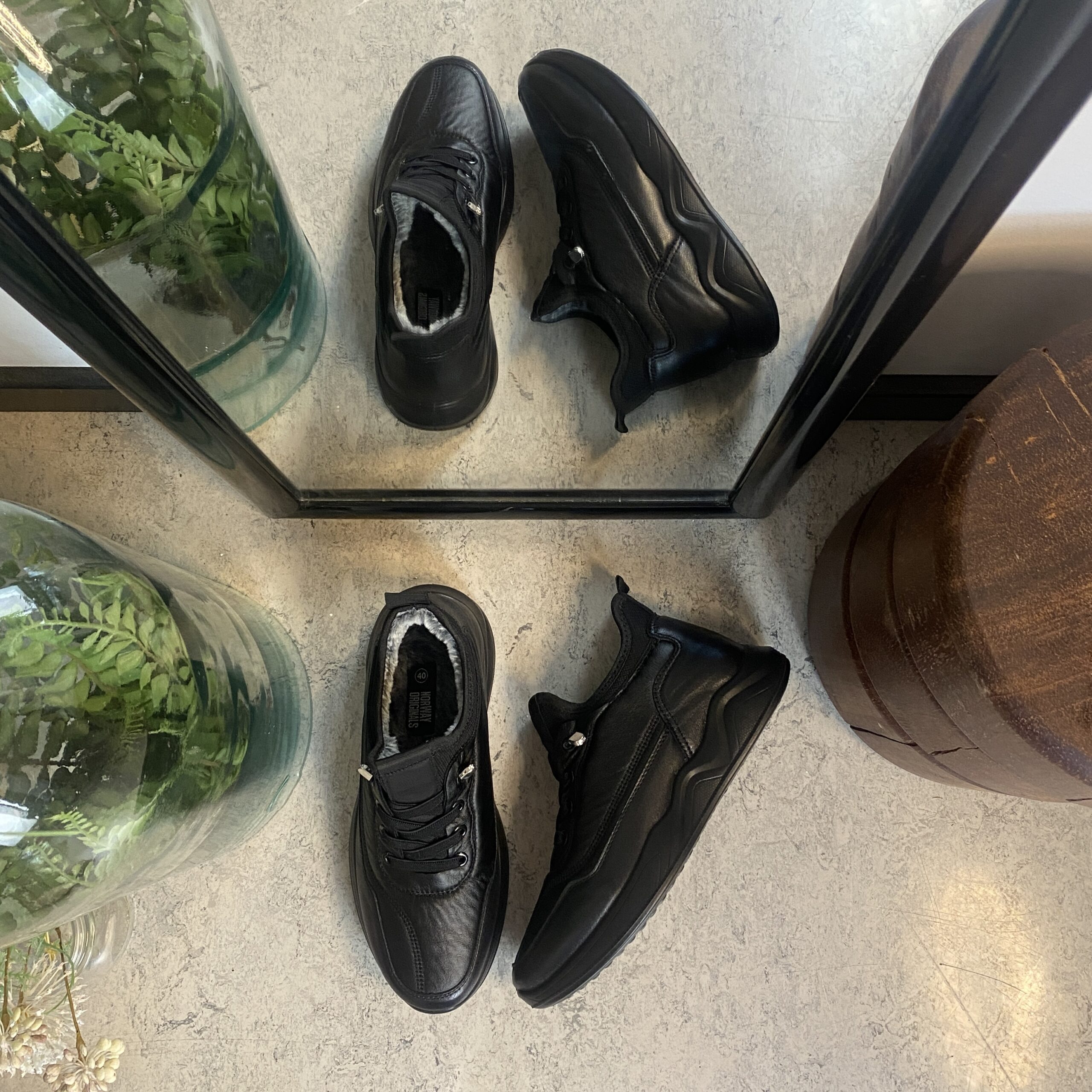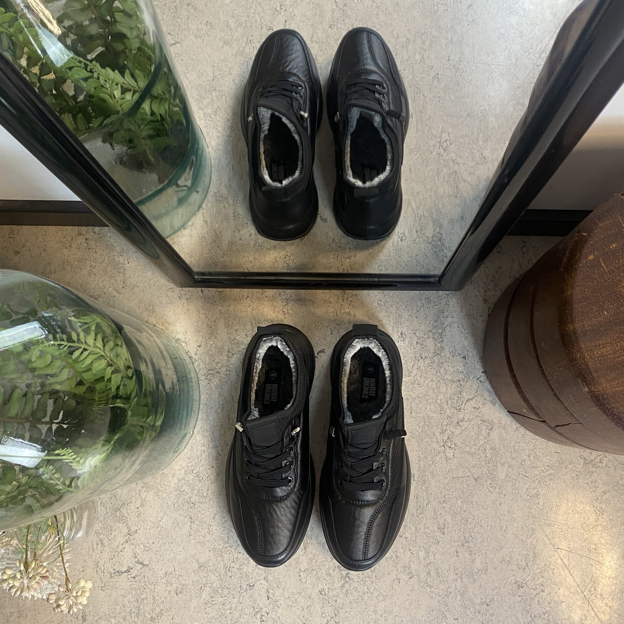 Sorte herresko, lette at træde i.