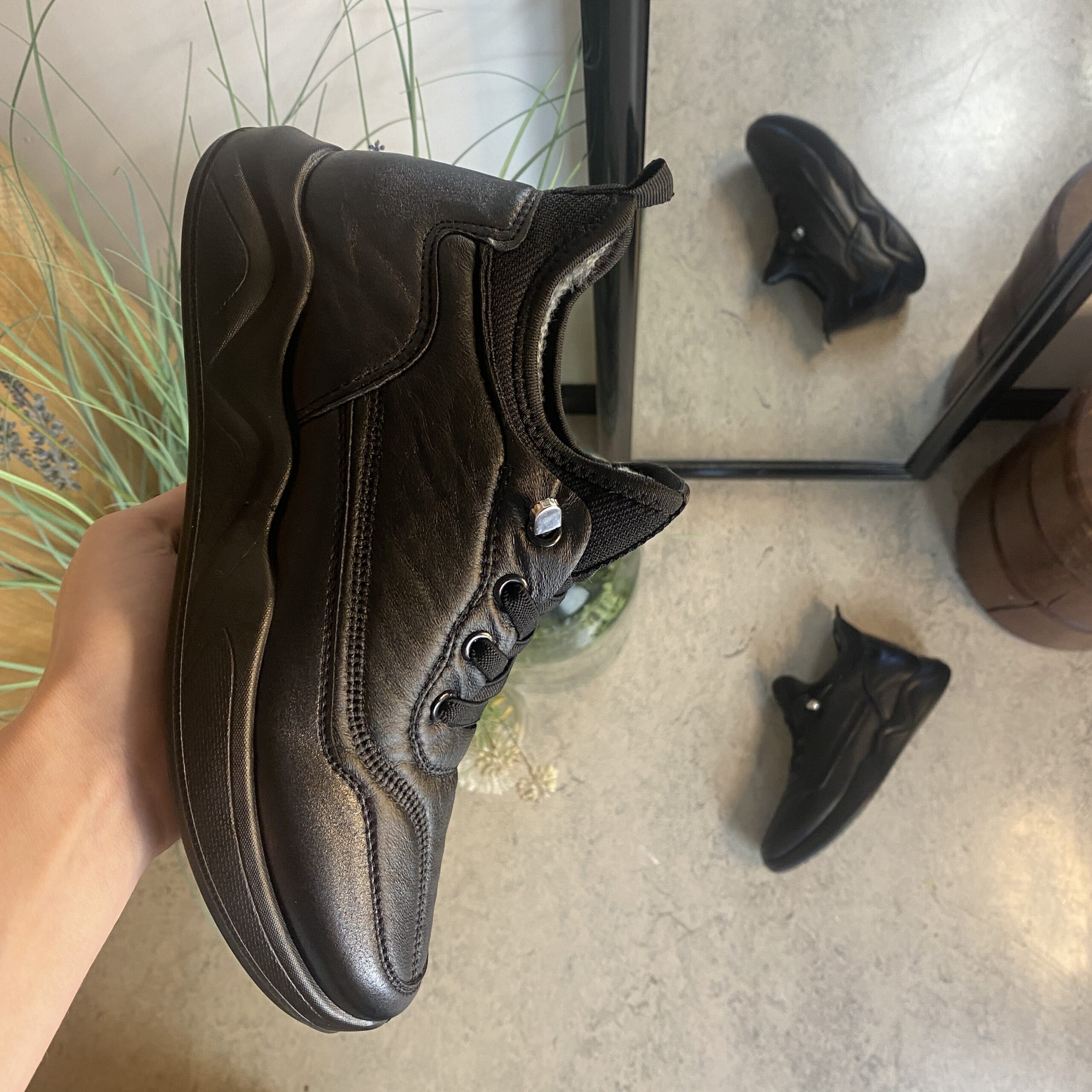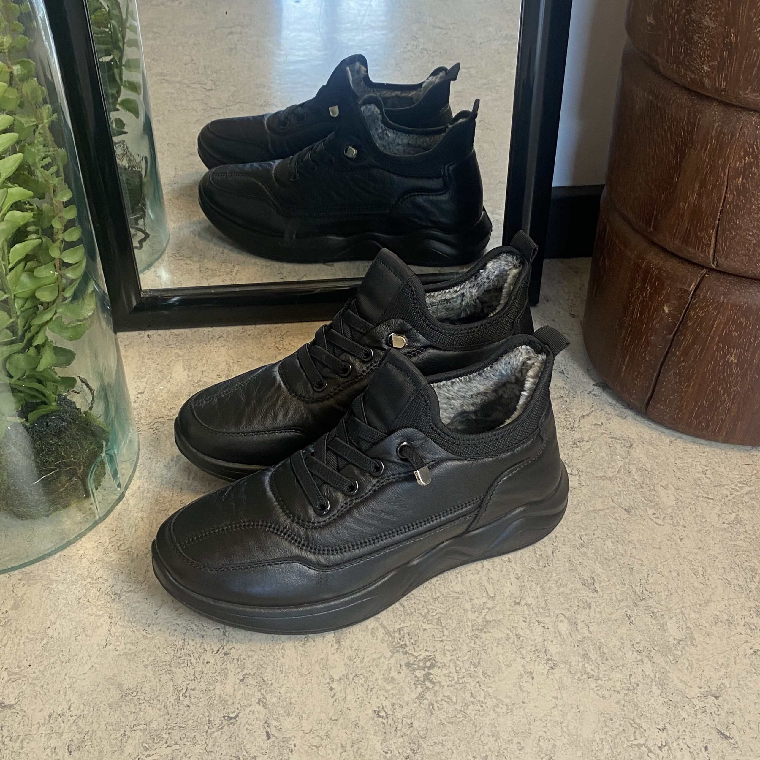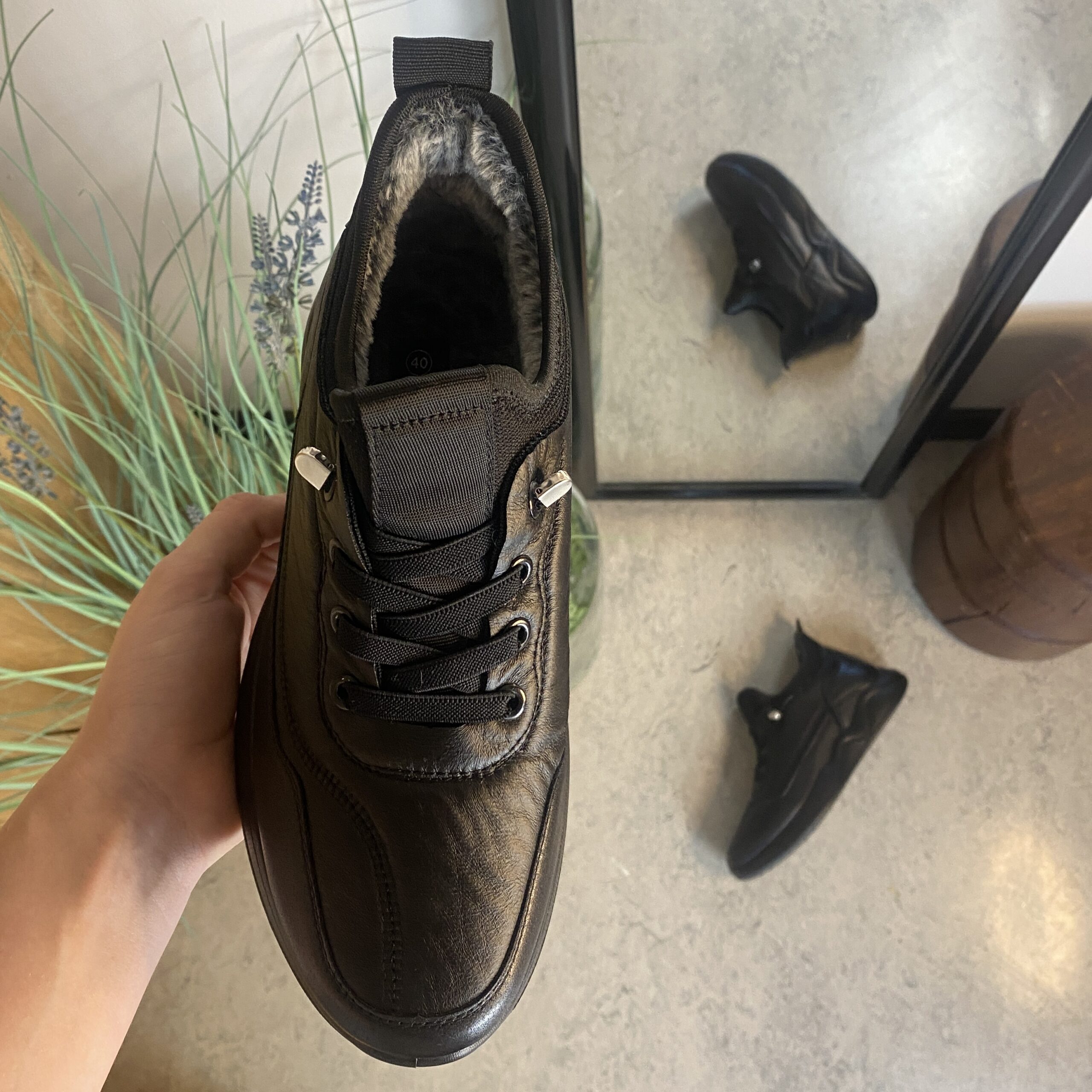 Sorte herresko, lette at træde i.