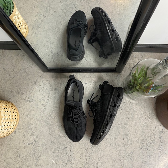 Selvom de har snørebånd, er de primært til pynt, da skoene er designet som slip-ons, hvilket gør dem nemme at tage af og på.