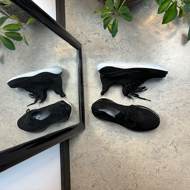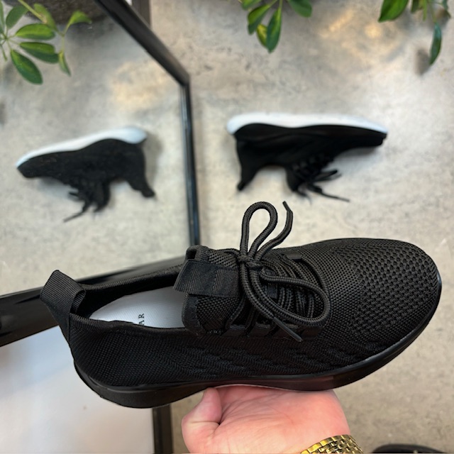 Sorte strikkede slip-on sneakers med fast kant i åbningen. Disse sko kombinerer en blød strikket overdel i åndbart mesh, der former sig efter din fod for ultimativ komfort. Den bløde skumsål giver fremragende støtte og ekstra polstring ved hælen stabiliserer din fod, hvilket gør dem ideelle til hele dagen. Ydersålen har masser af stødabsorbering og et let mønster for trækkraft. Størrelser fra 36 til 41 .