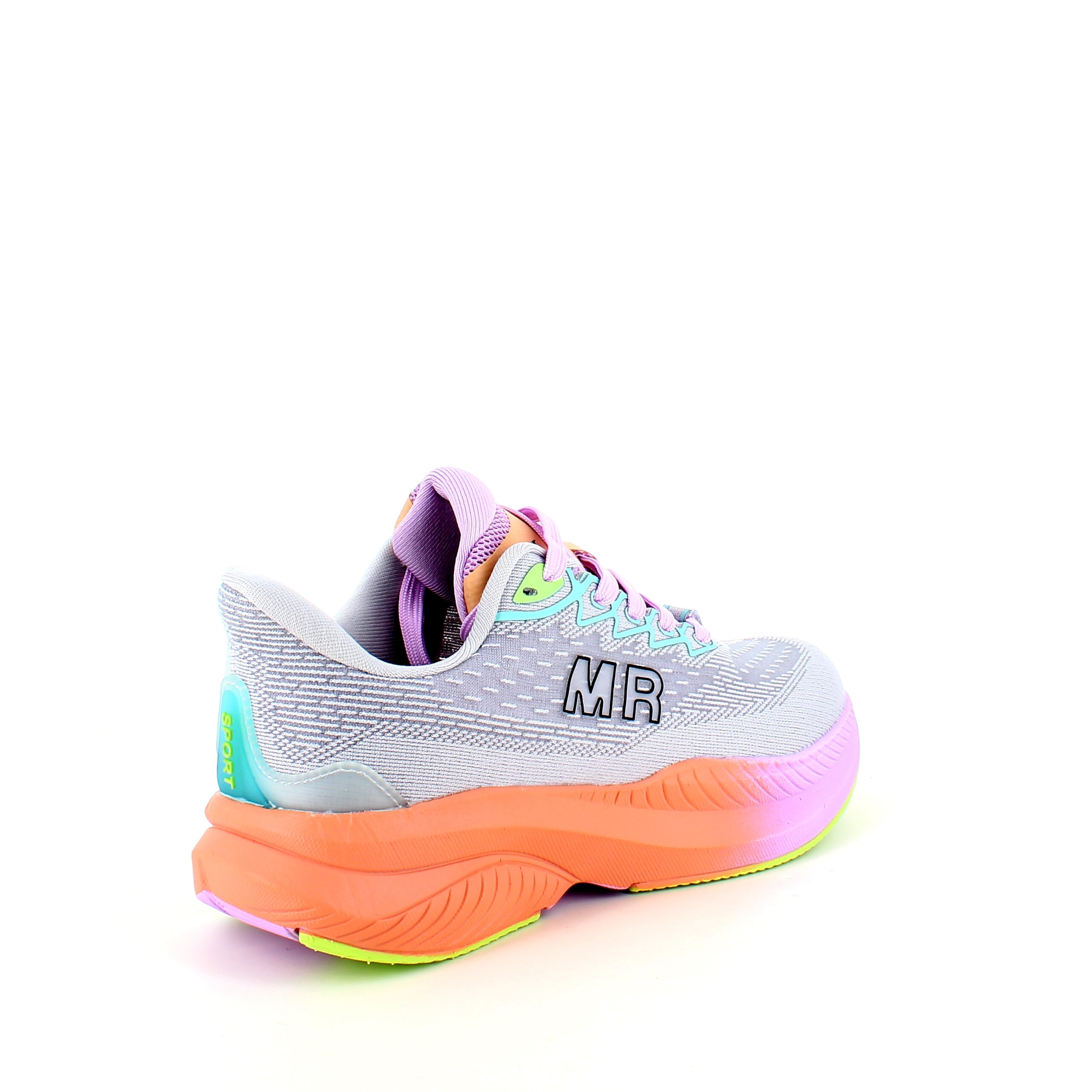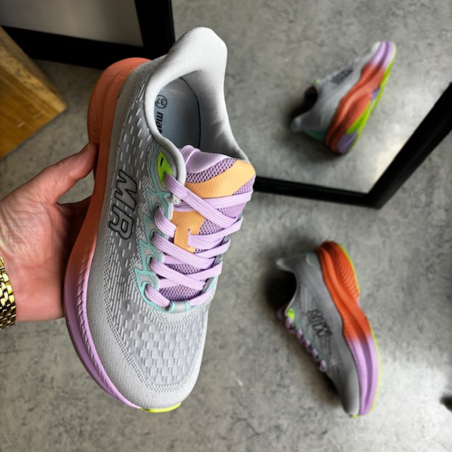 Skoen findes i størrelserne 36 – 41 og findes i en turkis/orange farvekombination.