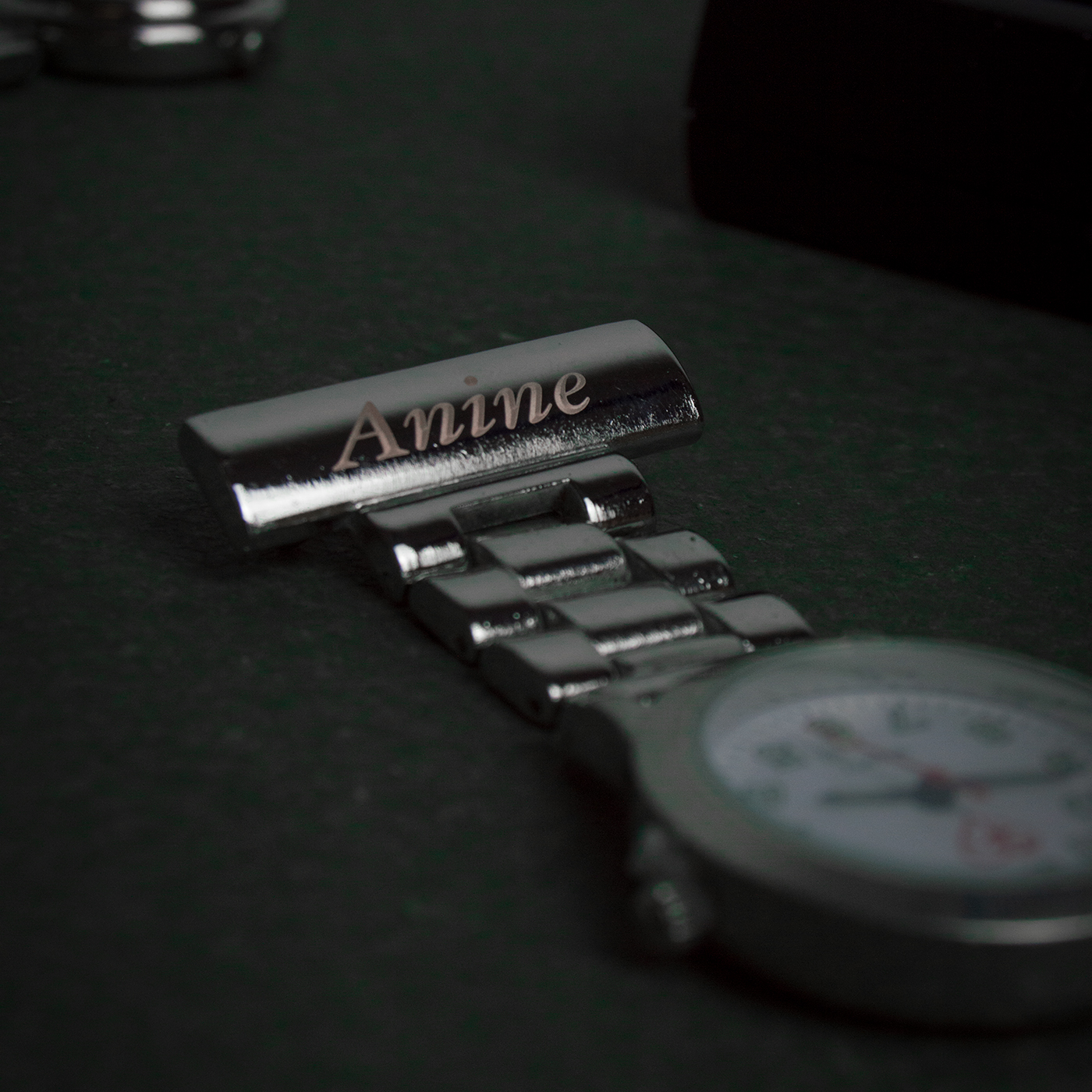 Der kan graveres op til 14 bogstaver på uret. Og vi leverer uret fra dag til dag med gravering.