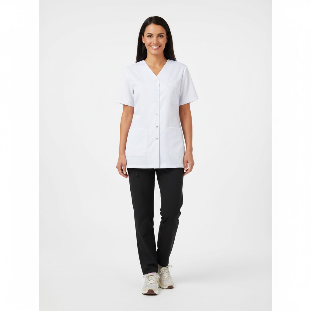 Nybo Hvid Dametunika Charisma Premium, Slankende V-Hals, Temperaturregulerende