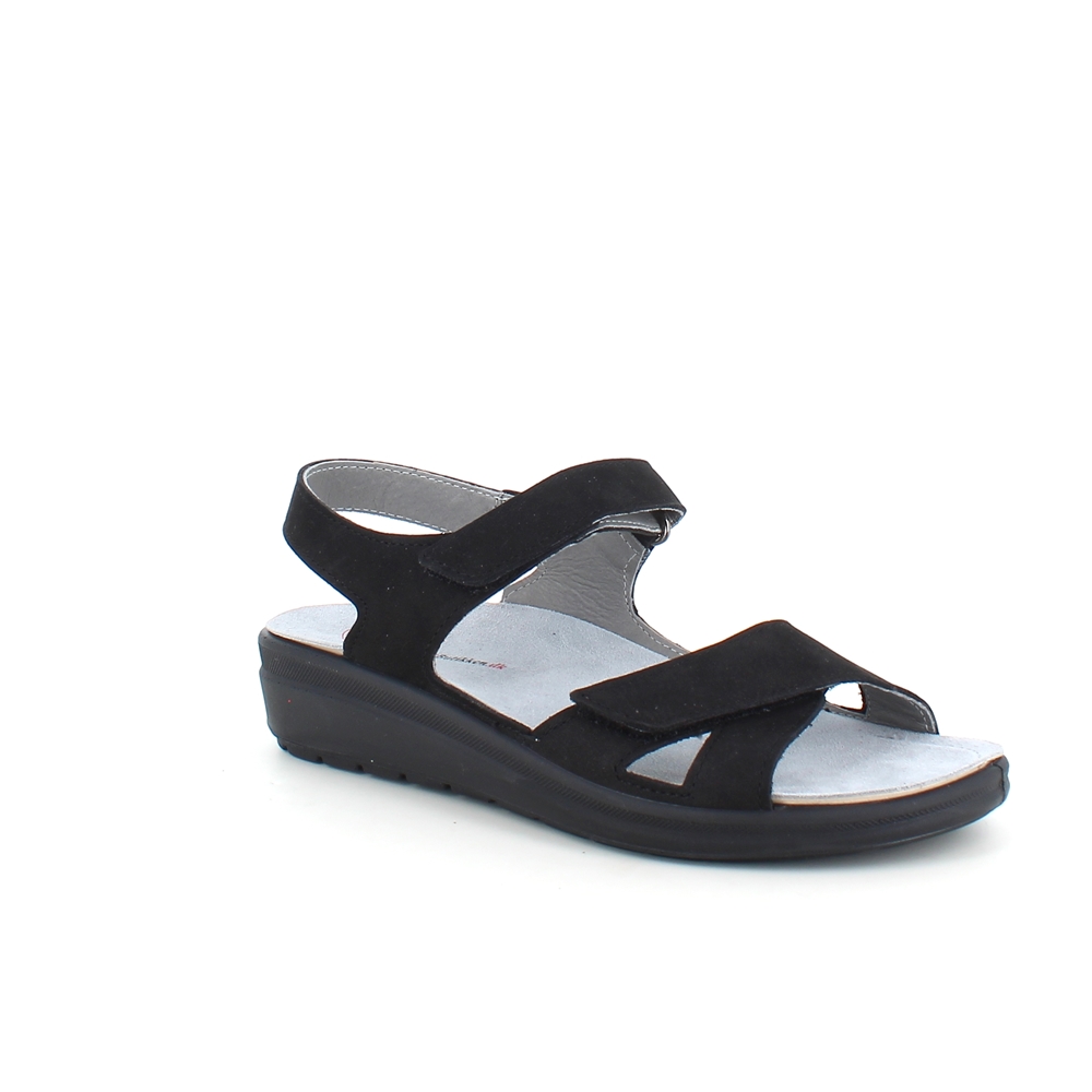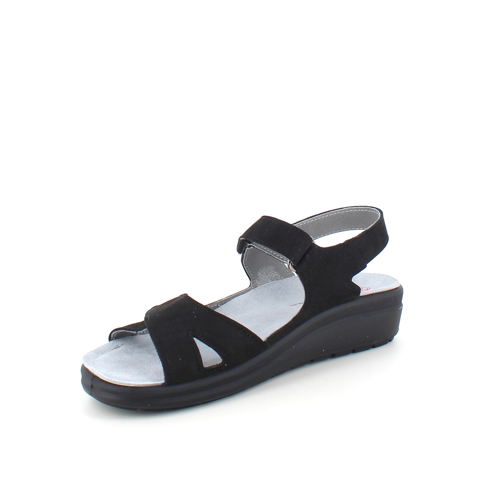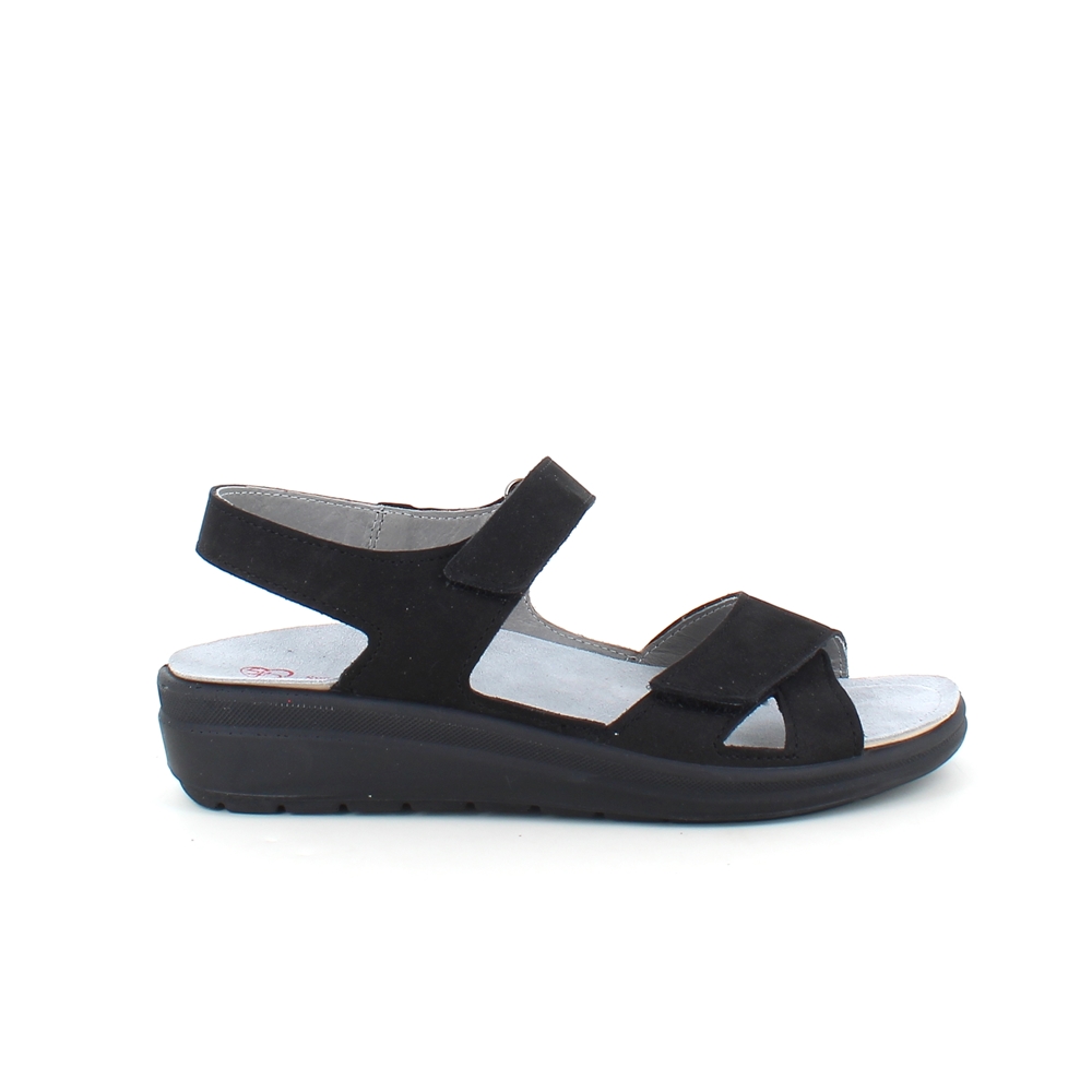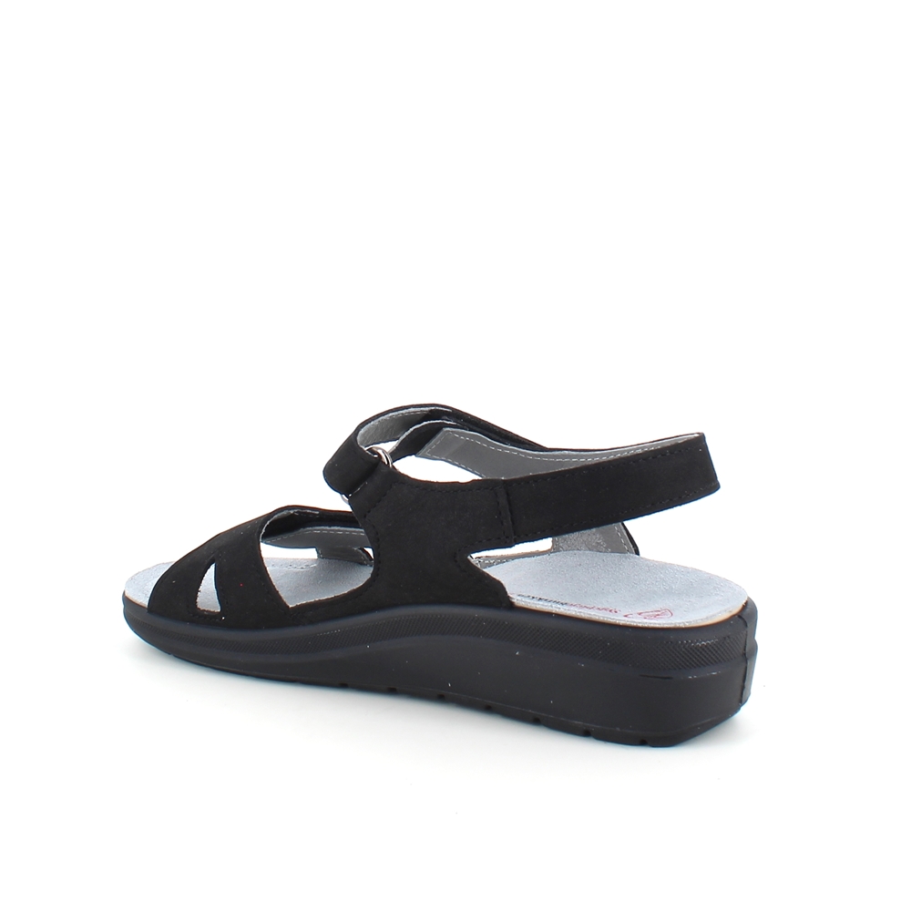 Stødabsorberende sort sandal med aftagelig sål