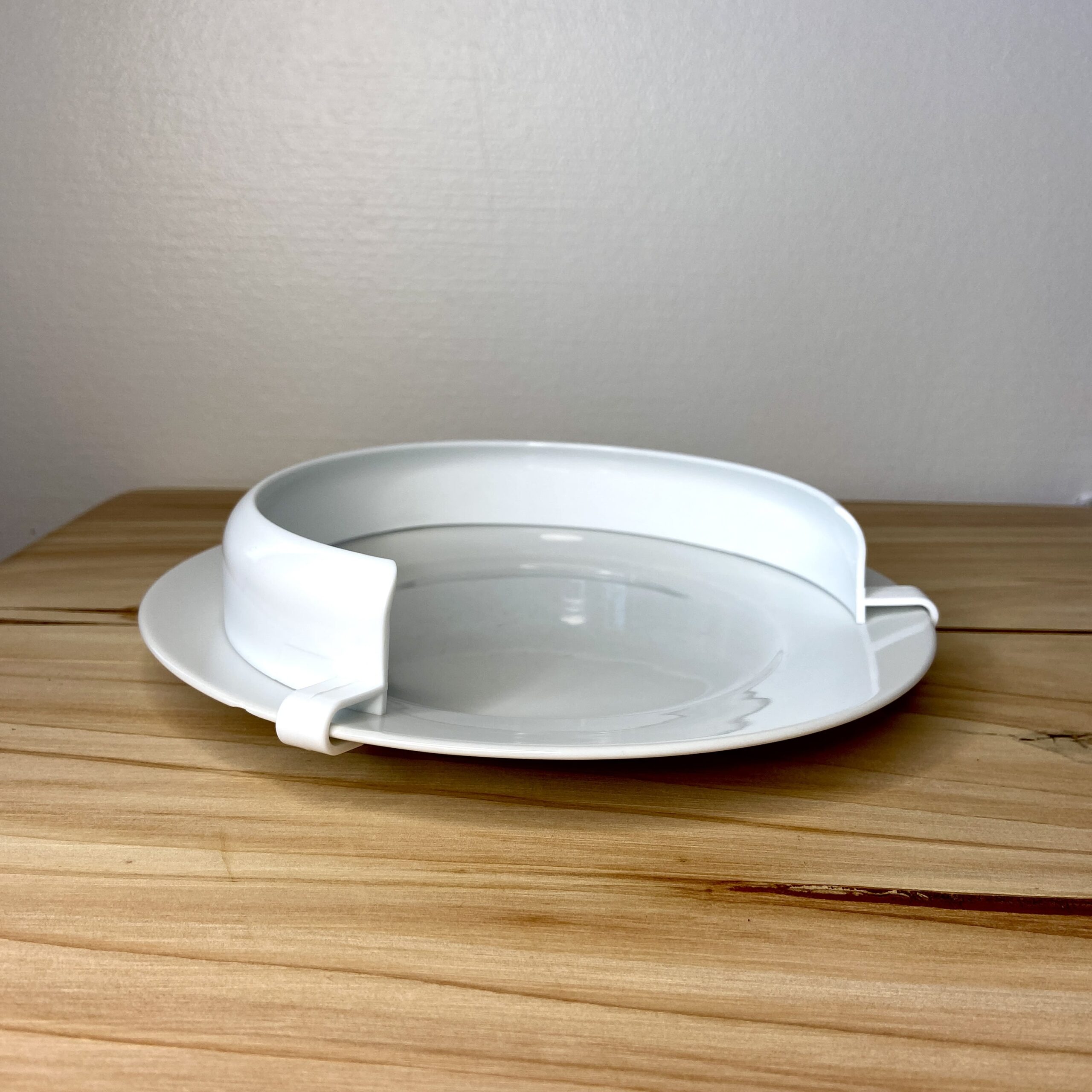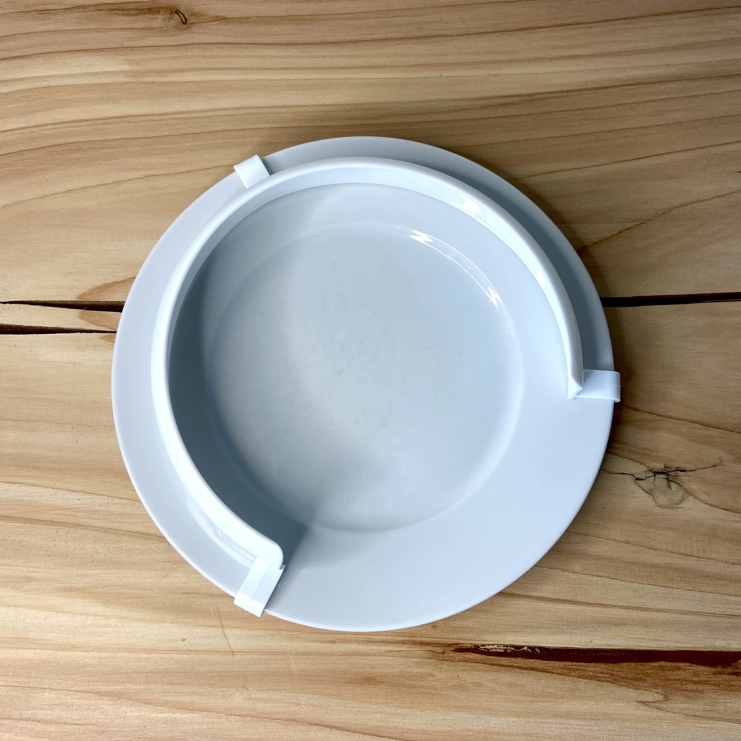 Den ekstra kant til din tallerken har 3 kroge der er nemme at klikke på en tallerken og holder derved kanten fast
