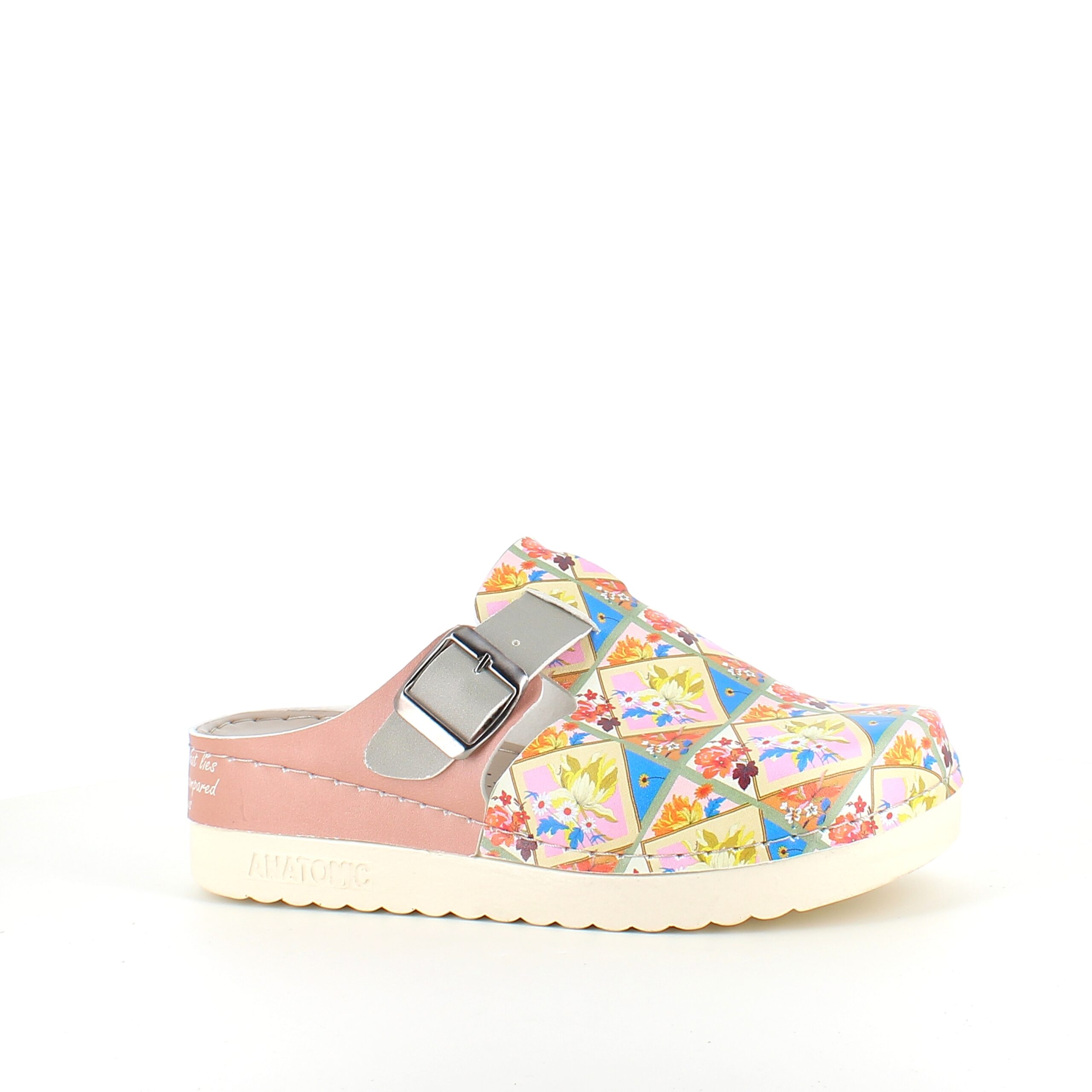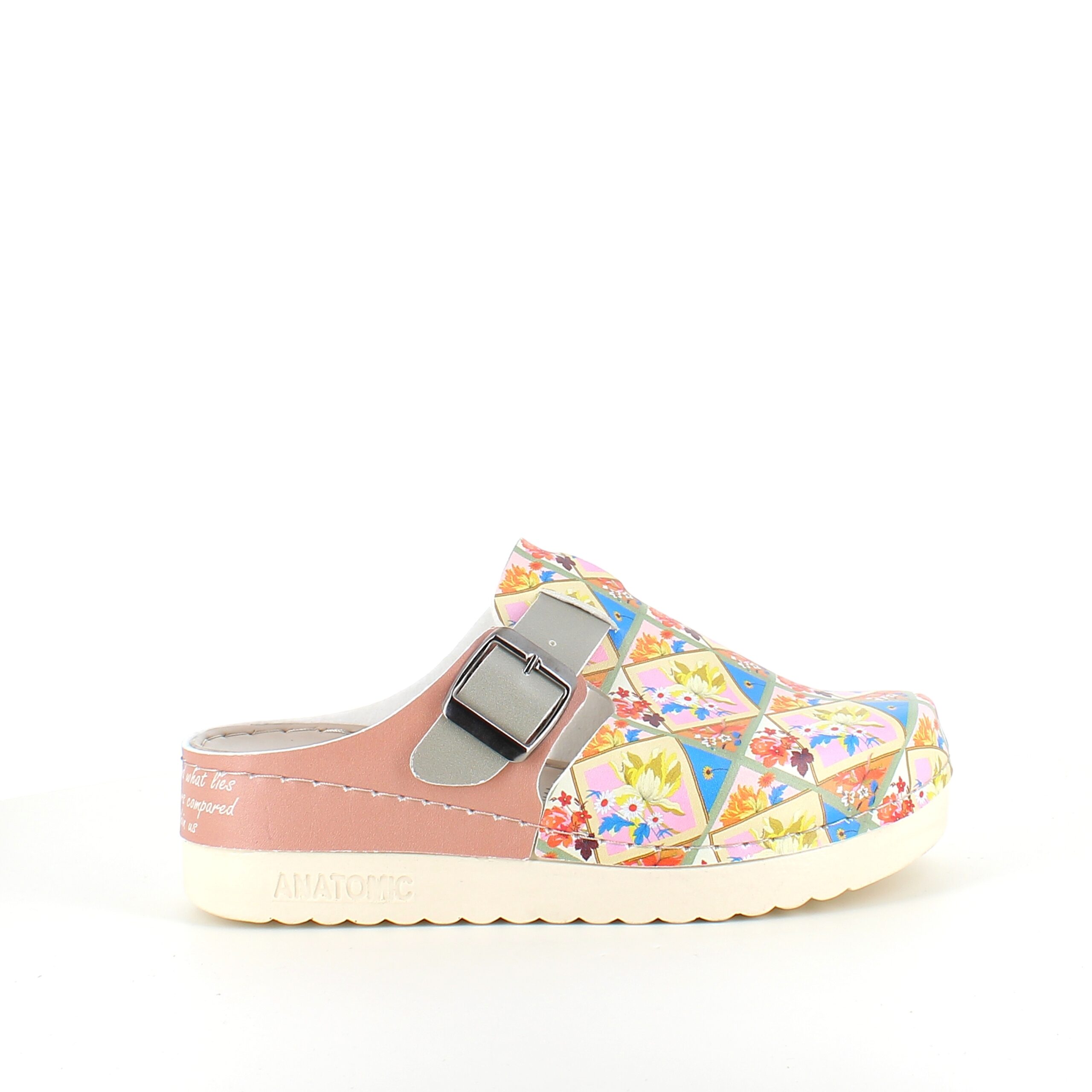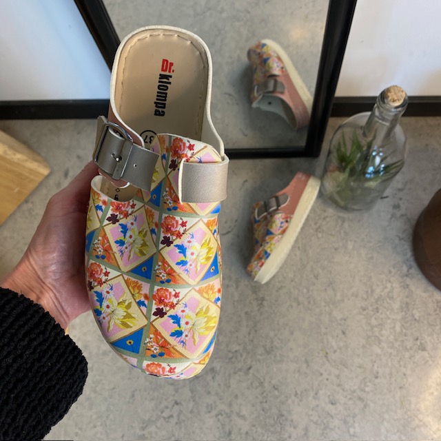 Træsko med blomsterprint