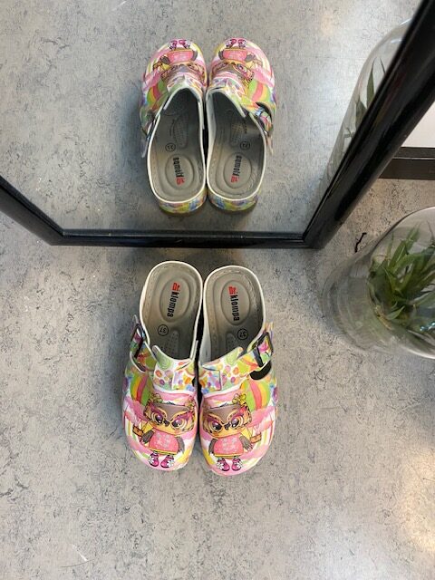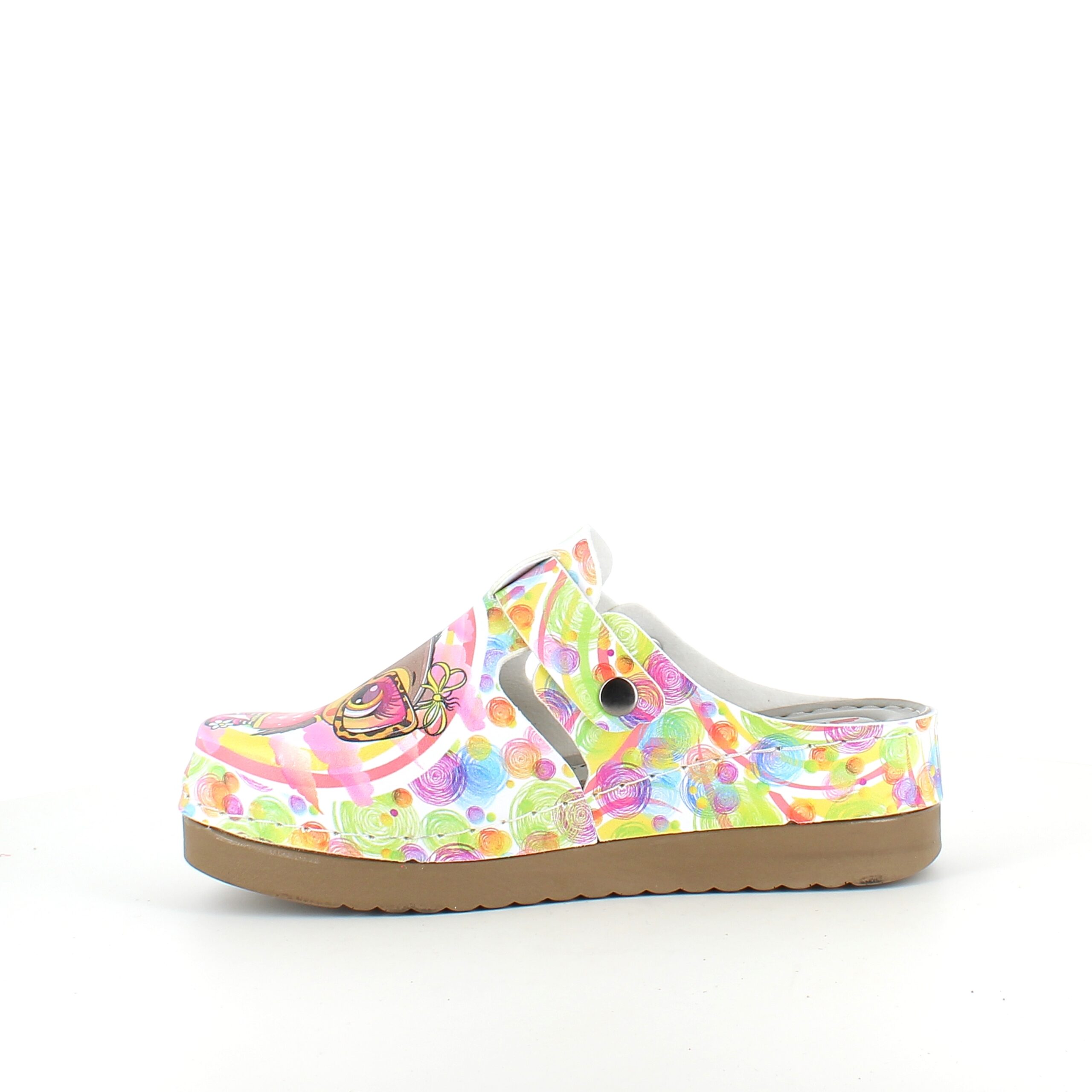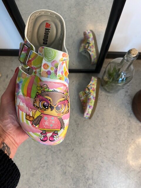 Træskoene har en lille kilehæl, der måler 2 cm ved forfoden og 4 cm ved hælen.