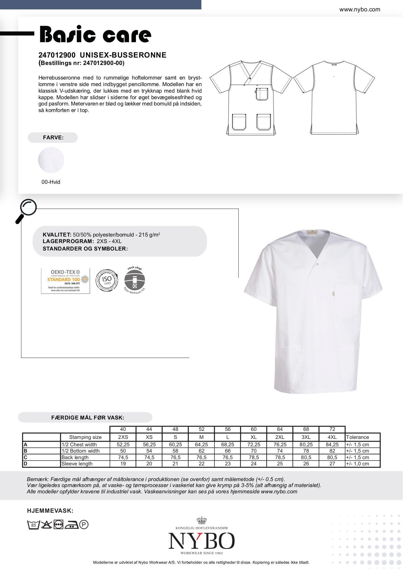Tunikaen kan vaskes ved op til 85 grader og fås i størrelser fra XS til 4XL.