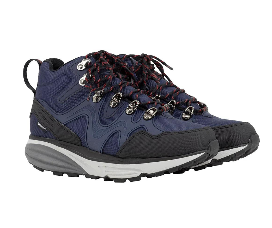 • Stilfuld og funktionel: MBT Navada kombinerer stil og funktionalitet med sit sporty design i en flot mørkeblå farve med røde detaljer. Den er udstyret med snørebånd og en Tex membran, der gør den vind- og vandtæt, hvilket gør den ideel til udendørsaktiviteter under alle vejrforhold.