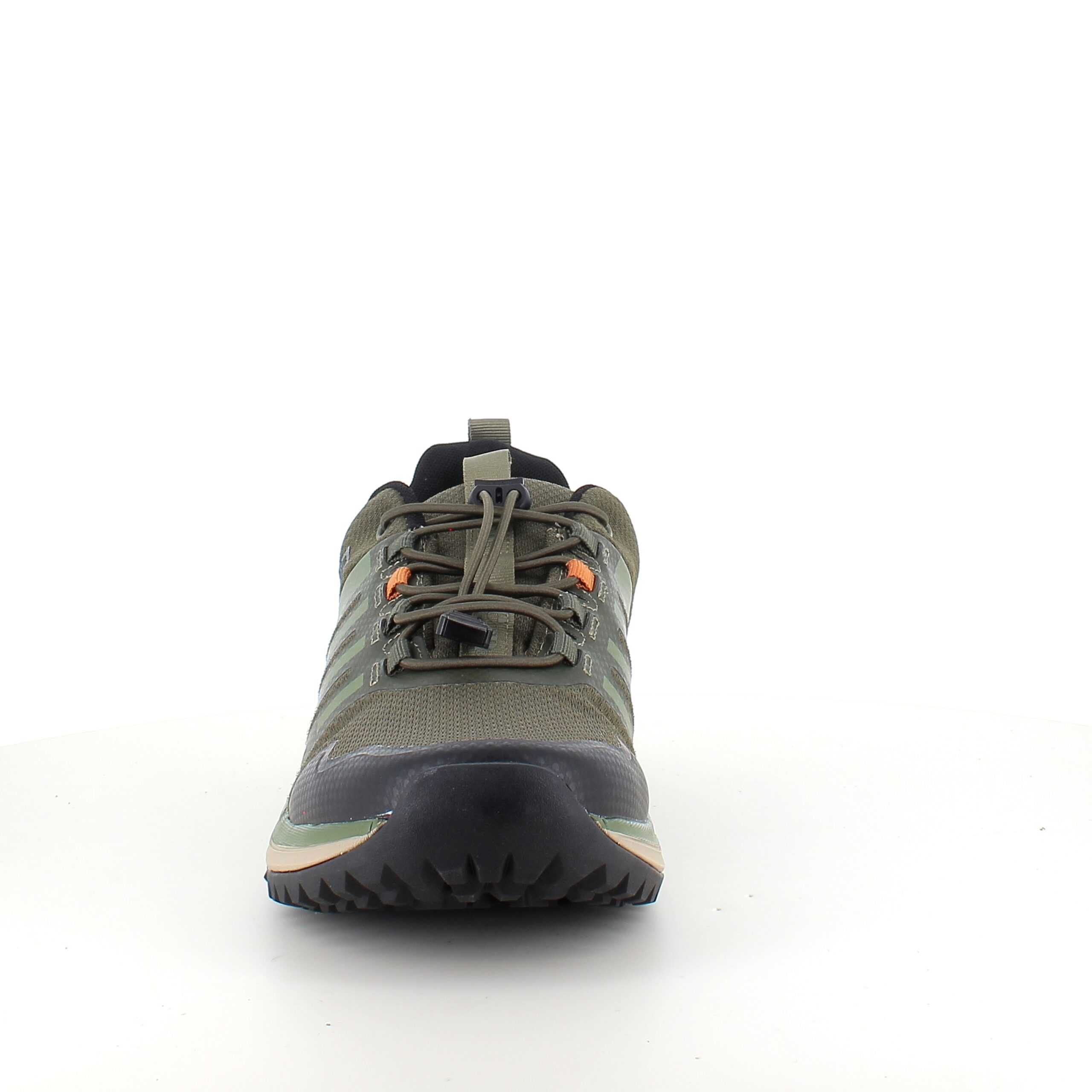 Skoen har elastik snøre og en klemmelås, som nemt kan reguleres .