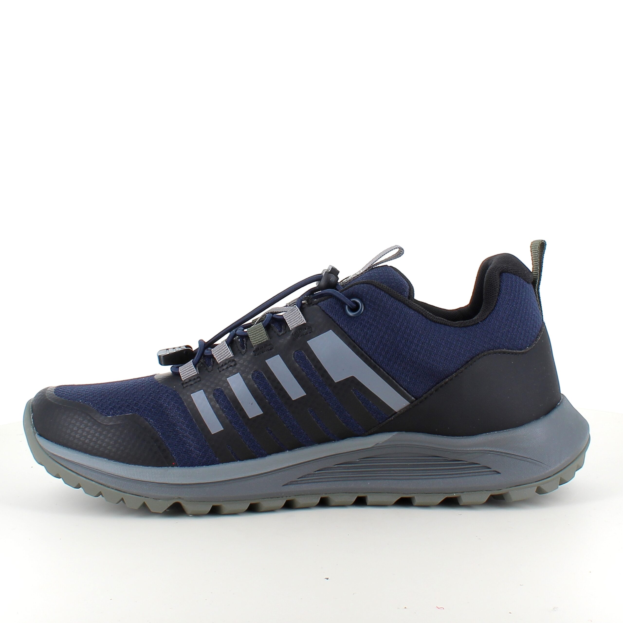 Skoen har elastik snøre og en klemmelås, som nemt kan reguleres .