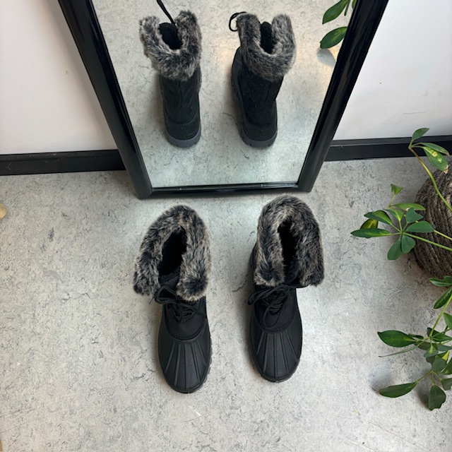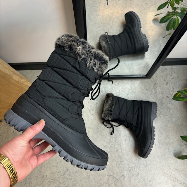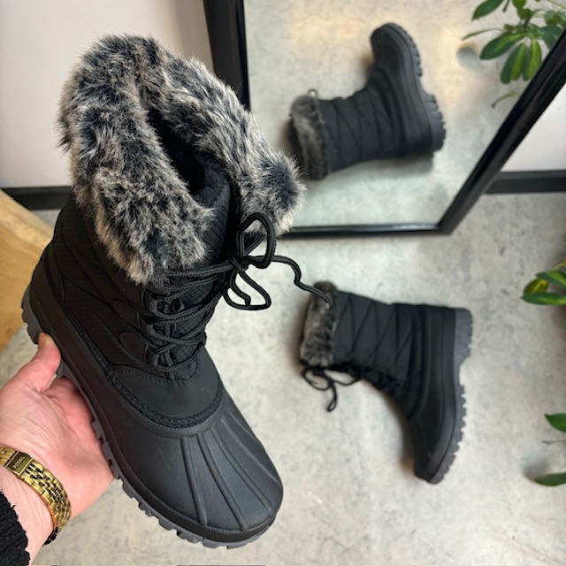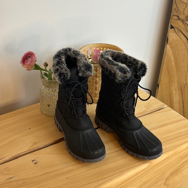 Sort vinterstøvle med flot pelskant øverst på det 21 cm høje skaft.