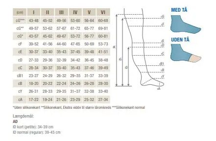 Størrelses guide til Jobst strømper