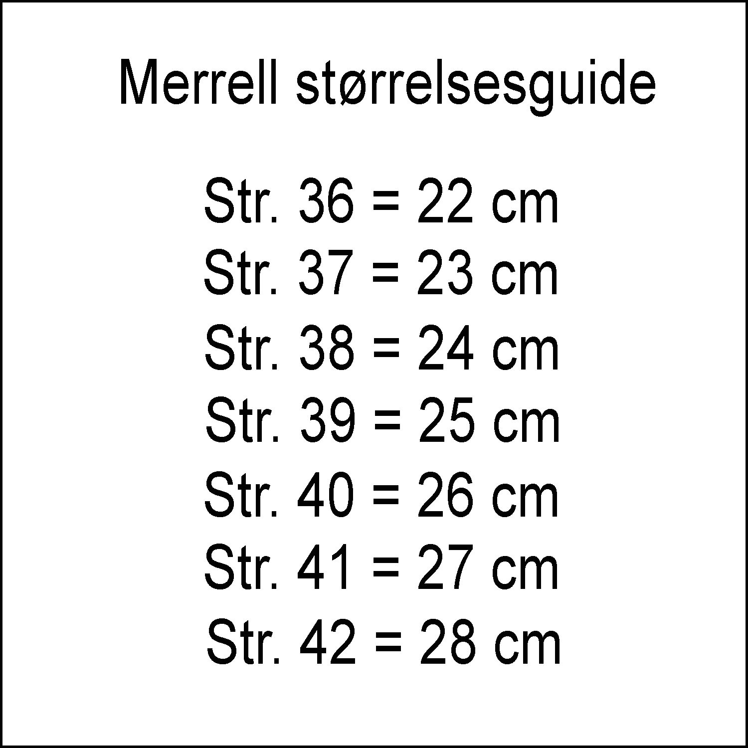 Generelt er Merrells fodtøj almindeligt i størrelserne, så du kan praktisk talt vælge frit, hvis du kender din skostørrelse. Hvis du ligger mellem to størrelser, er det en god ide at måle din fod, inden du vælger.