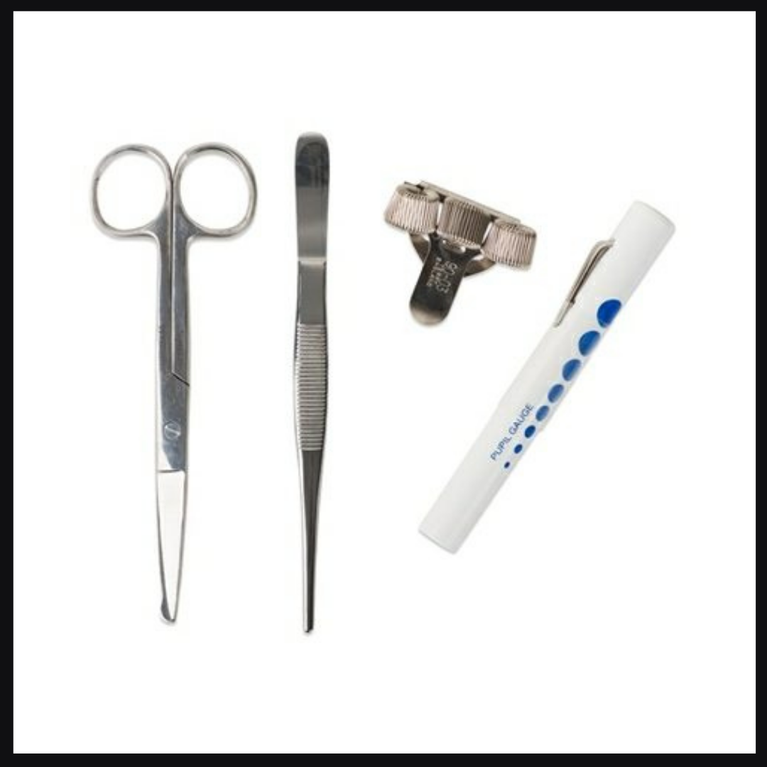 Vores lille pakke til lommen indeholder de basale ting som en penholder, sygeplejesaks, pincet til medicindosering og lygte. Få en startpakke med det hele til 199 kr.