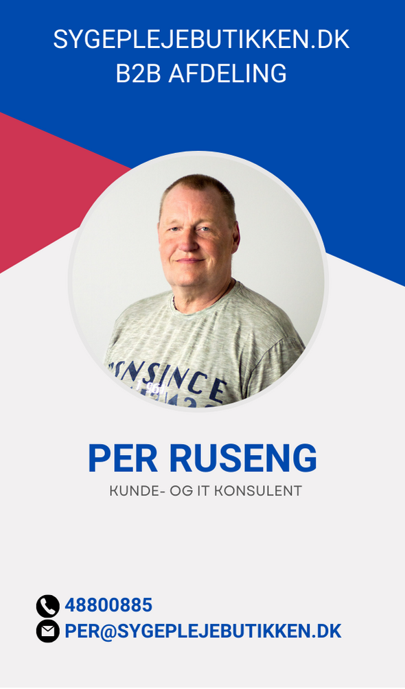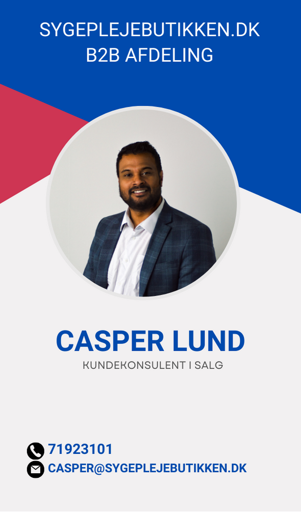 Sygeplejebutikkens B2B afdeling repræsenterer en dedikeret og erfaringsrig ressource for virksomheder, kommuner, regioner og sygehuse, der søger skræddersyede løsninger inden for sygepleje og arbejdssikkerhed. Med en omfattende baggrund i at levere kvalitetsprodukter og service til det professionelle sundhedssektor og erhvervslivet, er vi stolte af at tilbyde vores ekspertise og support til organisationer, der stræber efter at forbedre deres arbejdsmiljø og effektivitet.